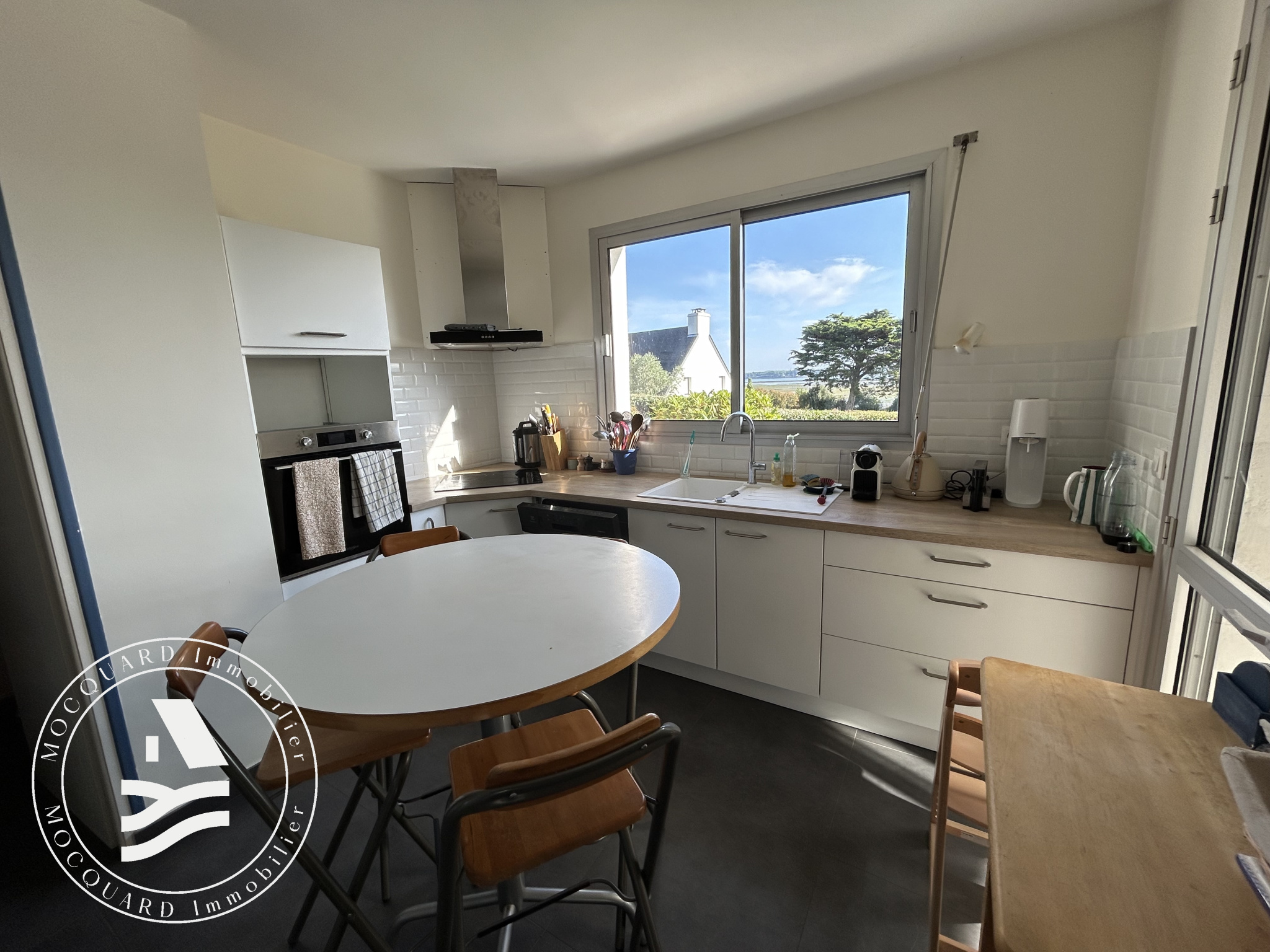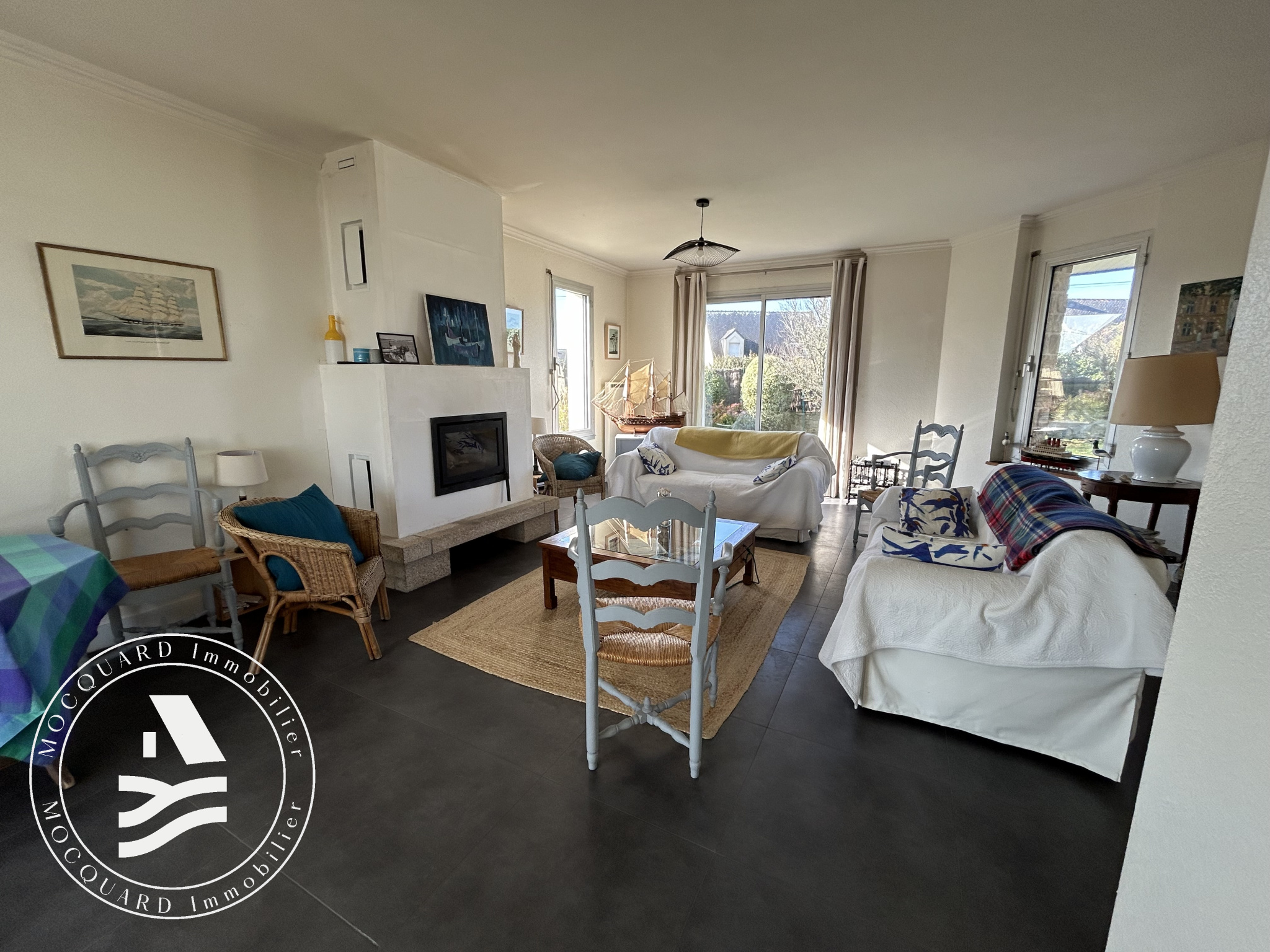 MOCQUARD Immobilier vous propose en exclusivité, cette maison des années 1980 récemment rénovée à l'entrée du bourg de Locmariaquer.