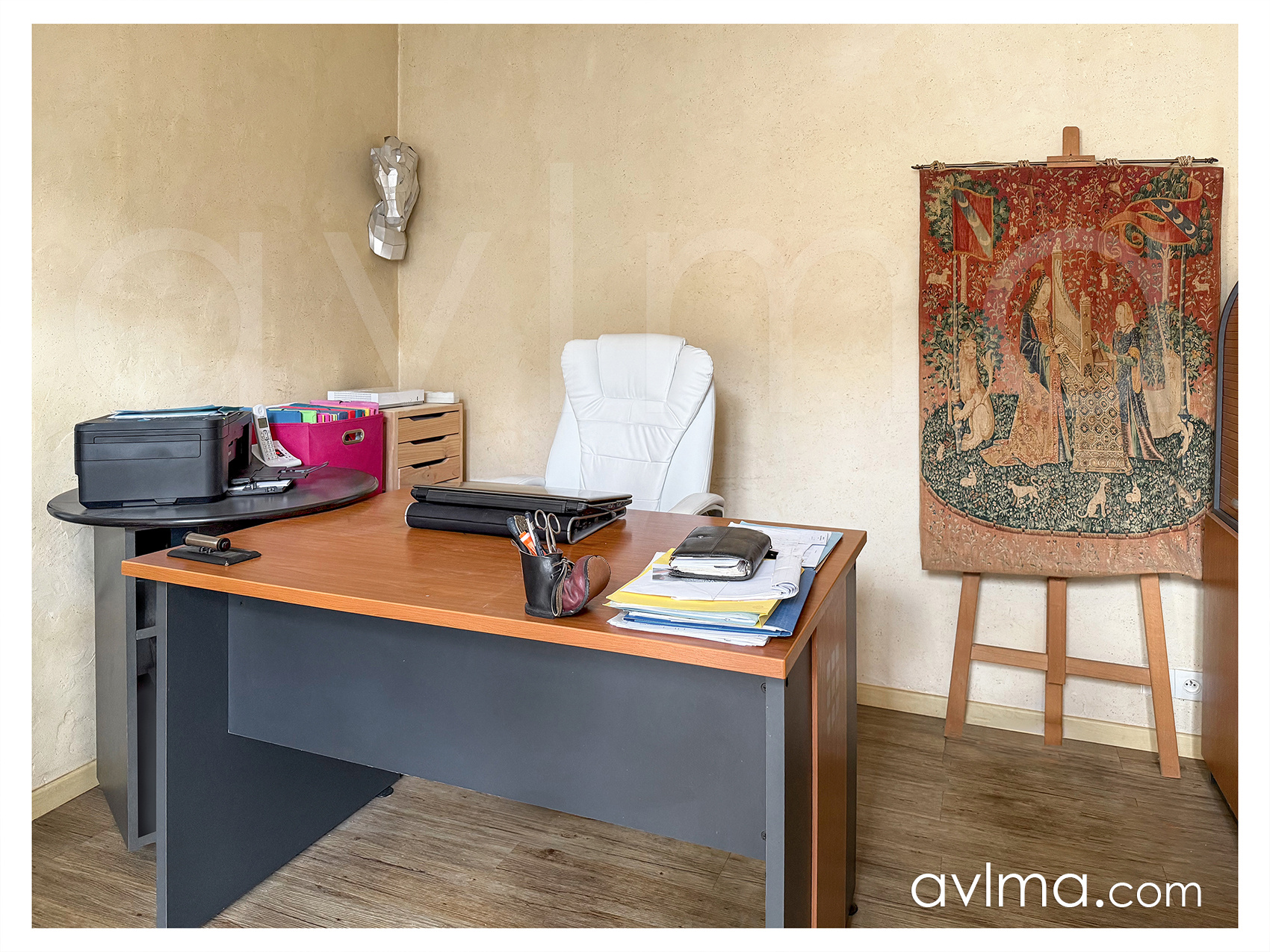 - À l'étage, une entrée surélevée dessert un bel espace bureau baigné de lumière, une chambre confortable, une salle de bains et des toilettes indépendants.
