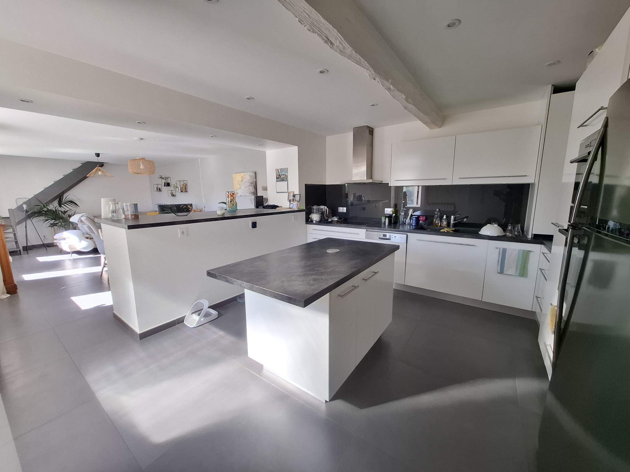 Pièce de vie de 45 m2 avec cuisine US équipée ouverte sur le séjour