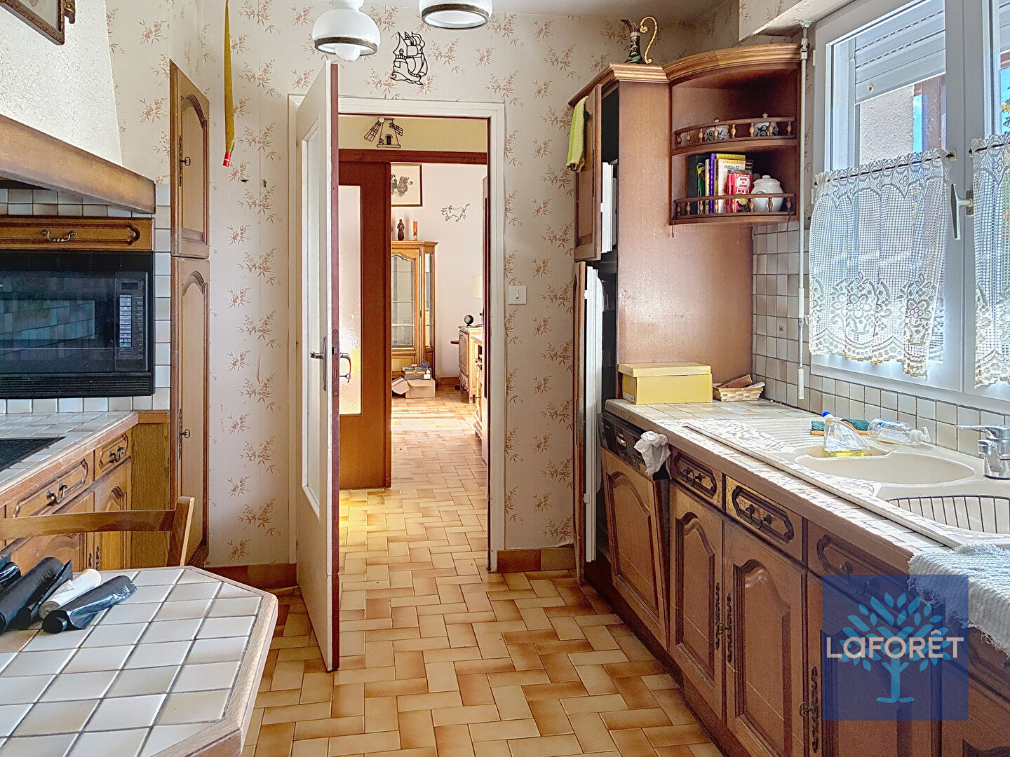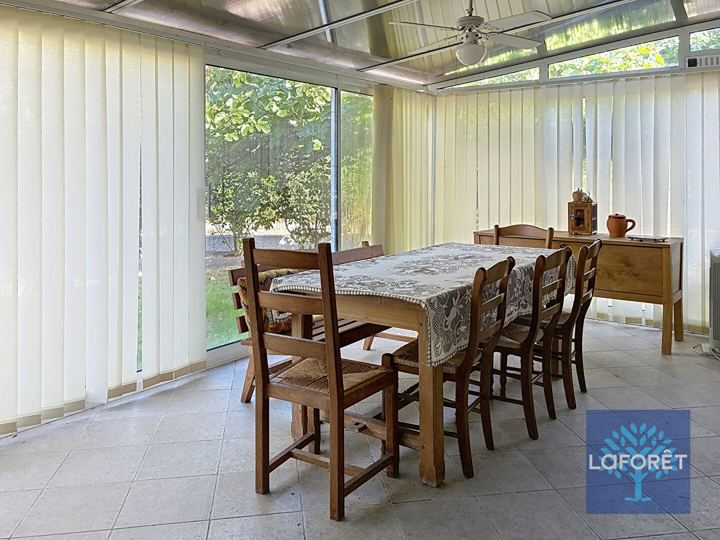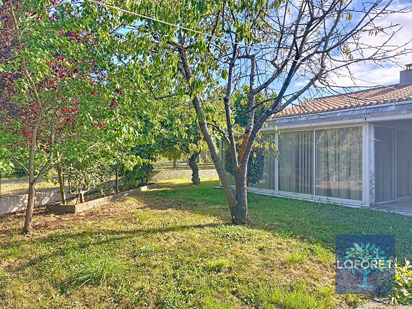 Proche du Parc de la Jarrie, centre bourg d'Olonne, pavillon de plain-pied sur un terrain clos et arboré de 450 m², comprenant : hall d'entrée-dégagement avec placard, salon-séjour donnant sur véranda, cuisine indépendante, deux chambres avec placards, sdb, wc, garage double, cave, dépendance