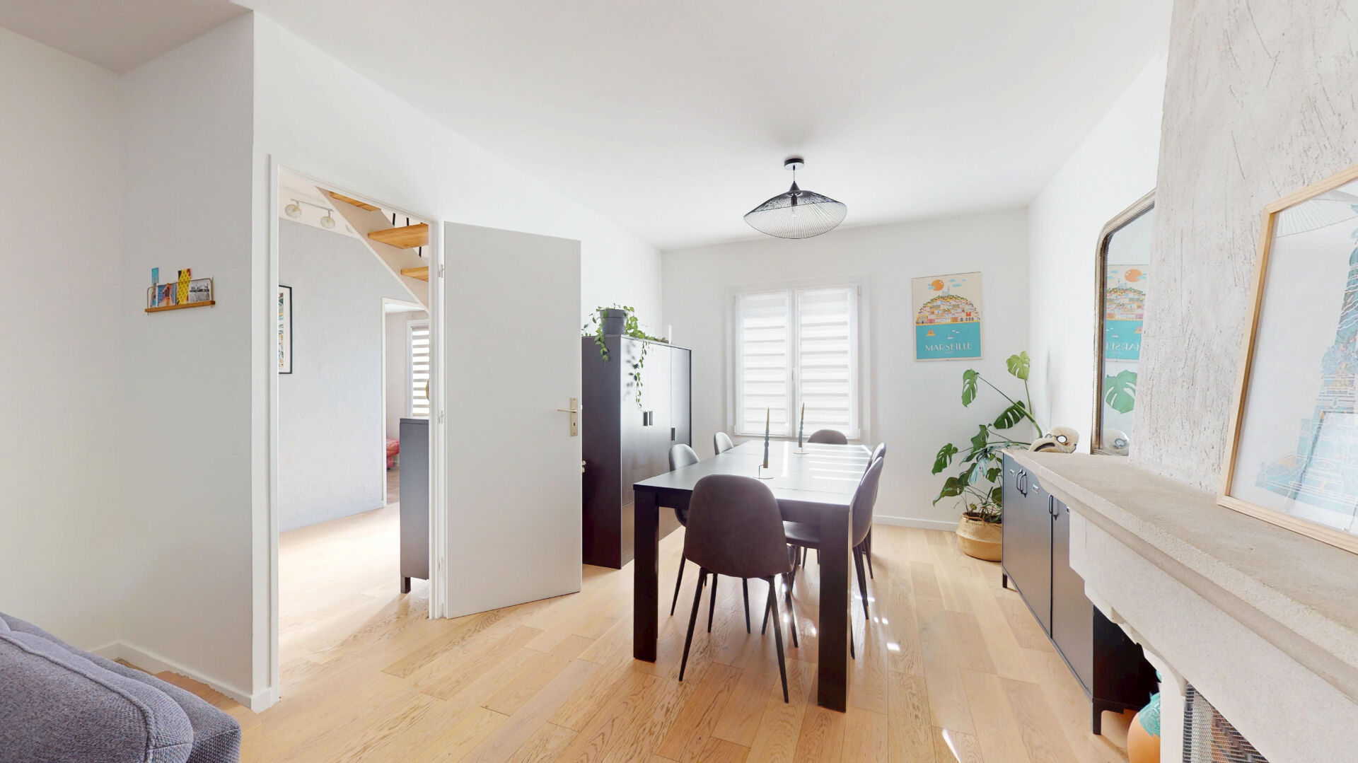 Elle se compose d'un grande entrée desservant une grande pièce de vie traversante avec cuisine ouverte de plus de 40 m² donnant accès au jardin. Un espace buanderie et l'accès au garage attenant. Vous disposez également d'une chambre au rez-de-chaussée et une salle d'eau attenante pour une vie de plain-pied. A l'étage, deux chambres, une salle de bains avec W.C.