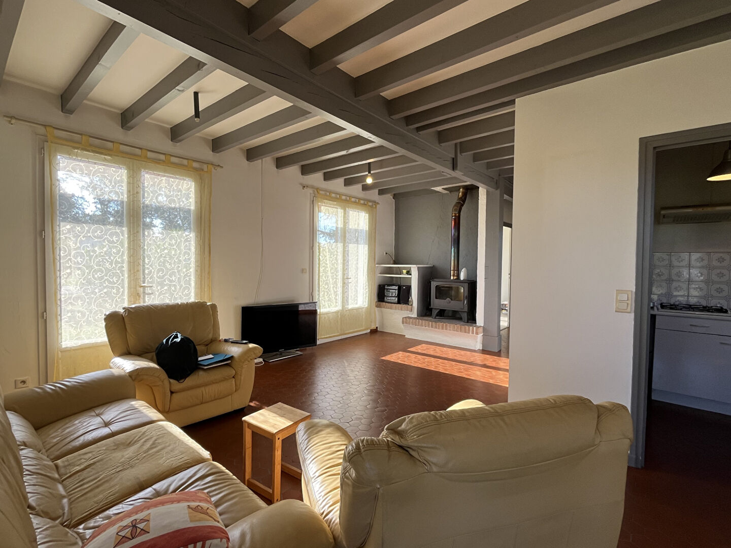 Elle est composée de 2 chambres, d'un séjour lumineux avec poêle à bois, d'une terrasse conviviale pour vos repas en extérieur, d'un garage attenant pour stationner ou stoker.
