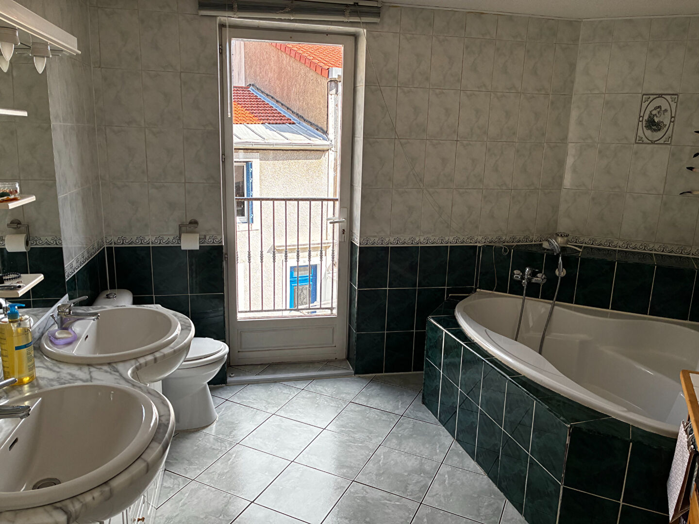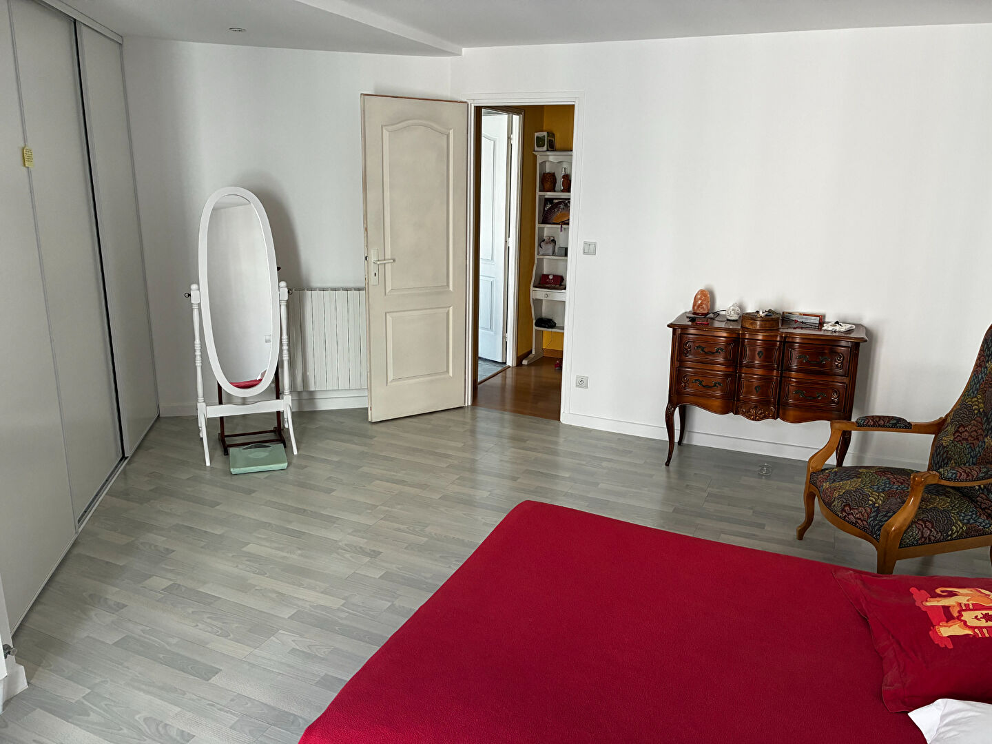 Au premier étage, vous découvrirez une spacieuse chambre avec placards, ouvrant sur un balcon, accompagnée d'une salle de bains avec WC, équipée d'une baignoire d'angle.