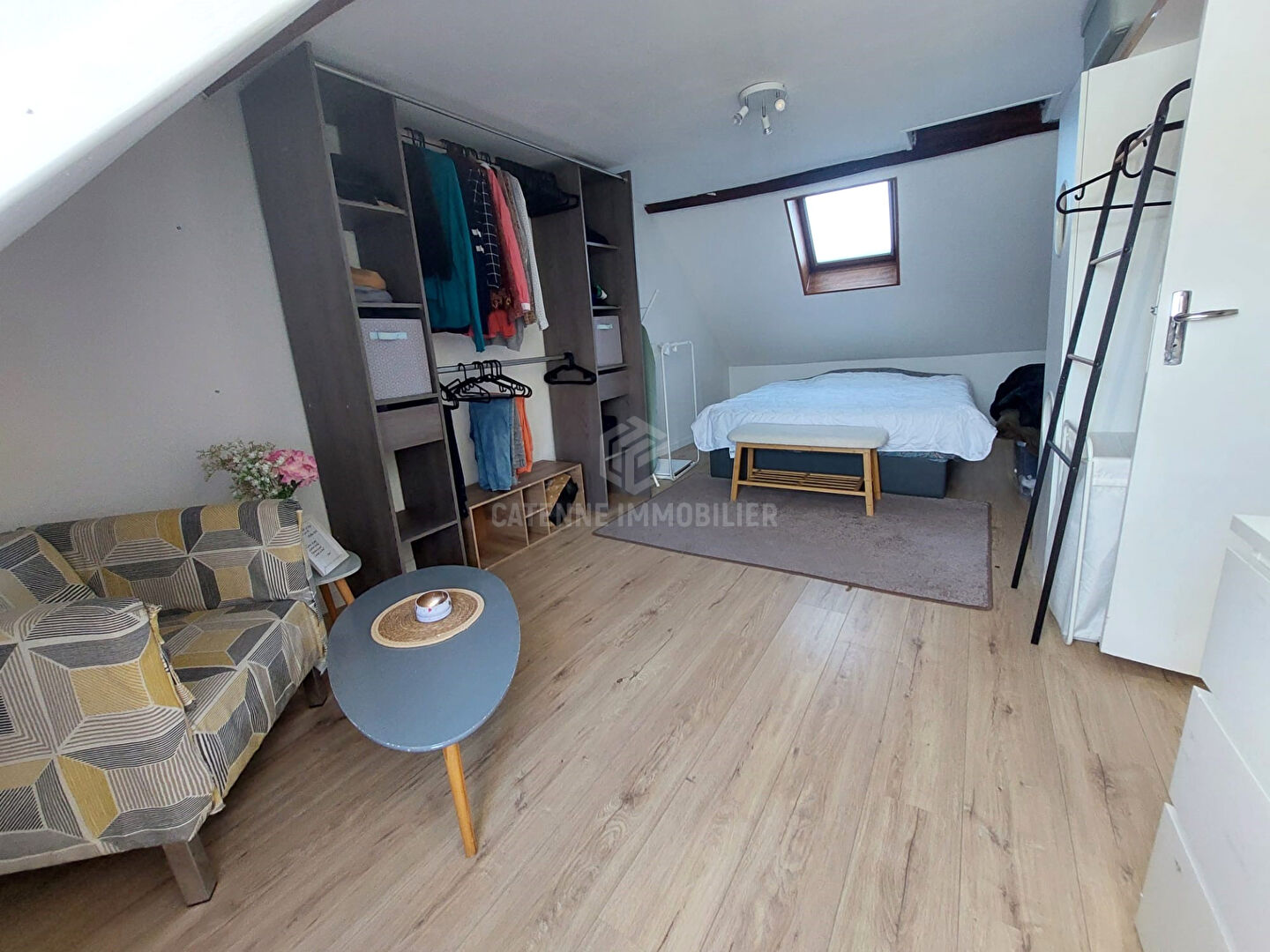 A l'étage un palier dessert une chambre et un grenier. Salle d'eau située dans la dépendance avec atelier. Un abri dans le fond du jardin.