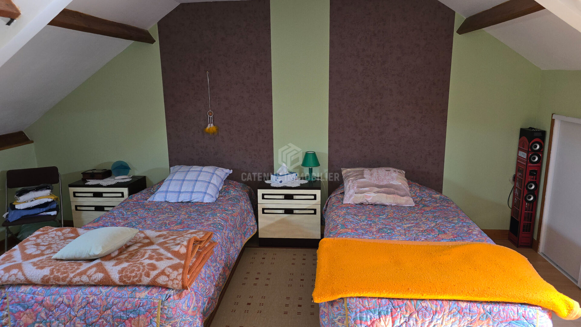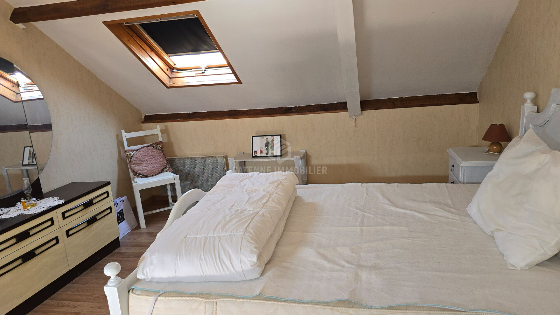 LEVIGNEN (60800) Ce pavillon vivable de plein pied édifié sur sous-sol idéalement situé dans un village calme proche de Crépy-en-Valois et de la RN2 vous séduira pour son vaste séjour avec cheminée et ses deux chambres situées au rez-de-chaussée complété par une douche et salle de bains. A l'étage un palier dessert deux chambres, une salle d'eau et un grenier pouvant être aménagé en dressing ou salle d'eau. Le sous-sol est distribué en une grande buanderie avec point d'eau, une cave spacieuse, un garage avec un grand espace de stockage. Possibilité de stationner un véhicule sur le côté de la maison. Le chauffage est électrique. Toutes les menuiseries sont en PVC double vitrage avec volets roulants électriques. Le tout est situé sur un terrain clos d'environ 824 m² avec terrasse à l'arrière. Ecole primaire sur place avec cantine et périscolaire. DPE : D.