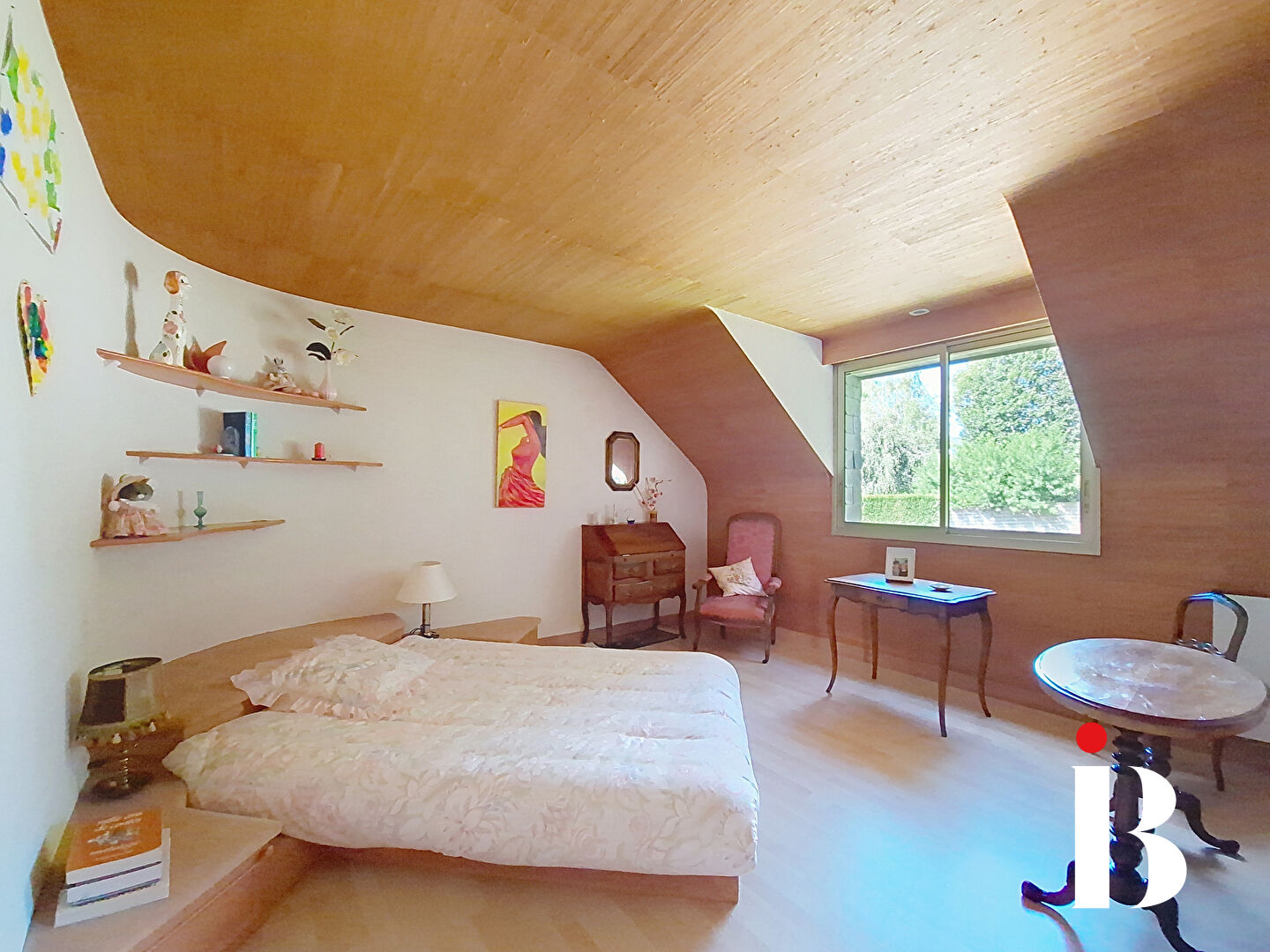 Sa suite parentale au rez-de-chaussée, offre confort et intimité.