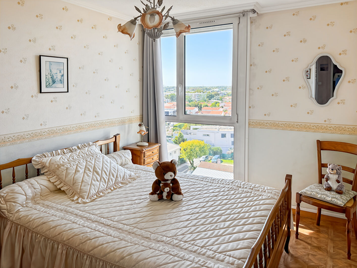 Quartier Capeyron. Situé au neuvième étage d'une résidence bien entretenue, cet appartement T4 traversant offre une surface d'environ 68 m².