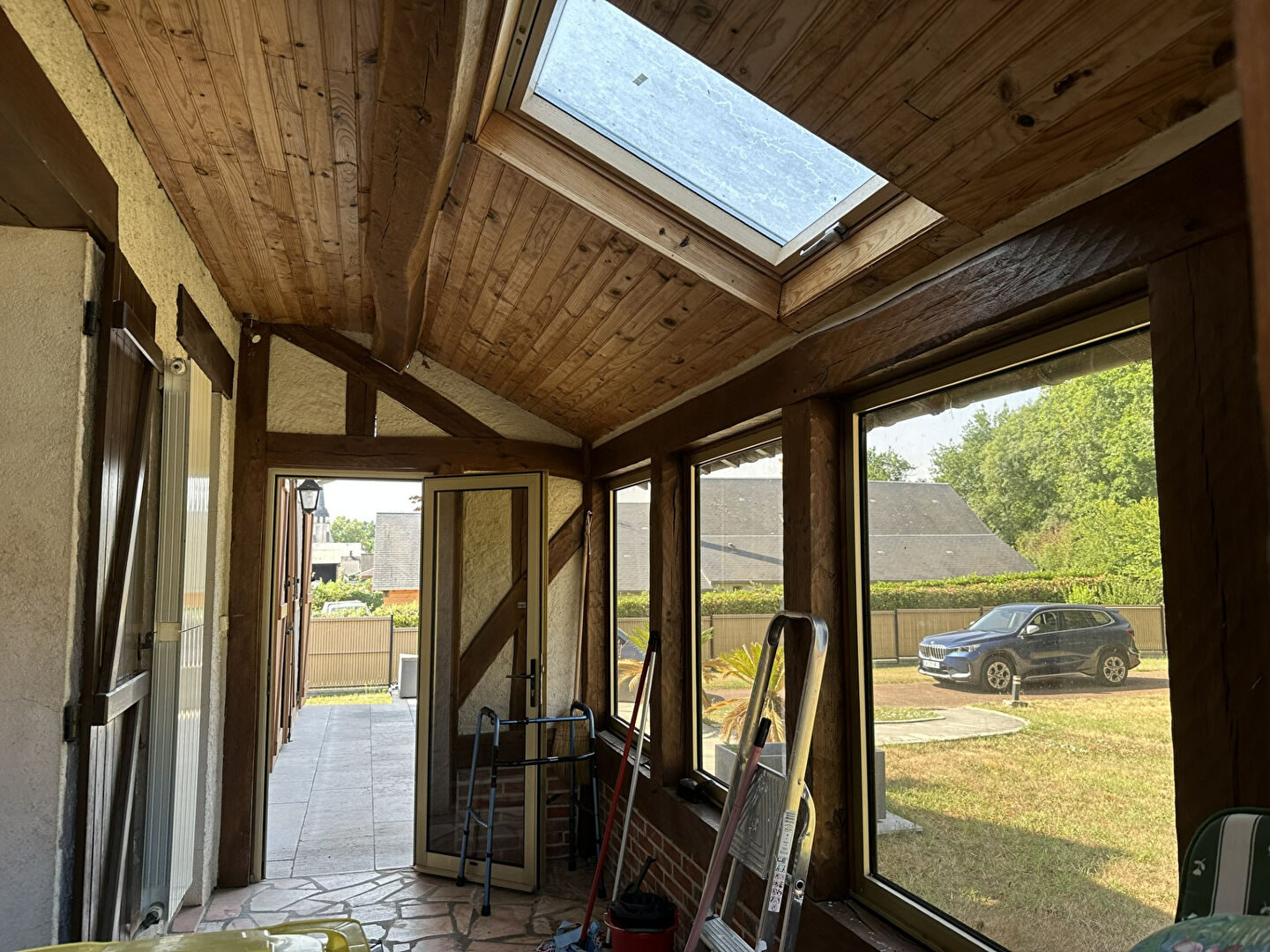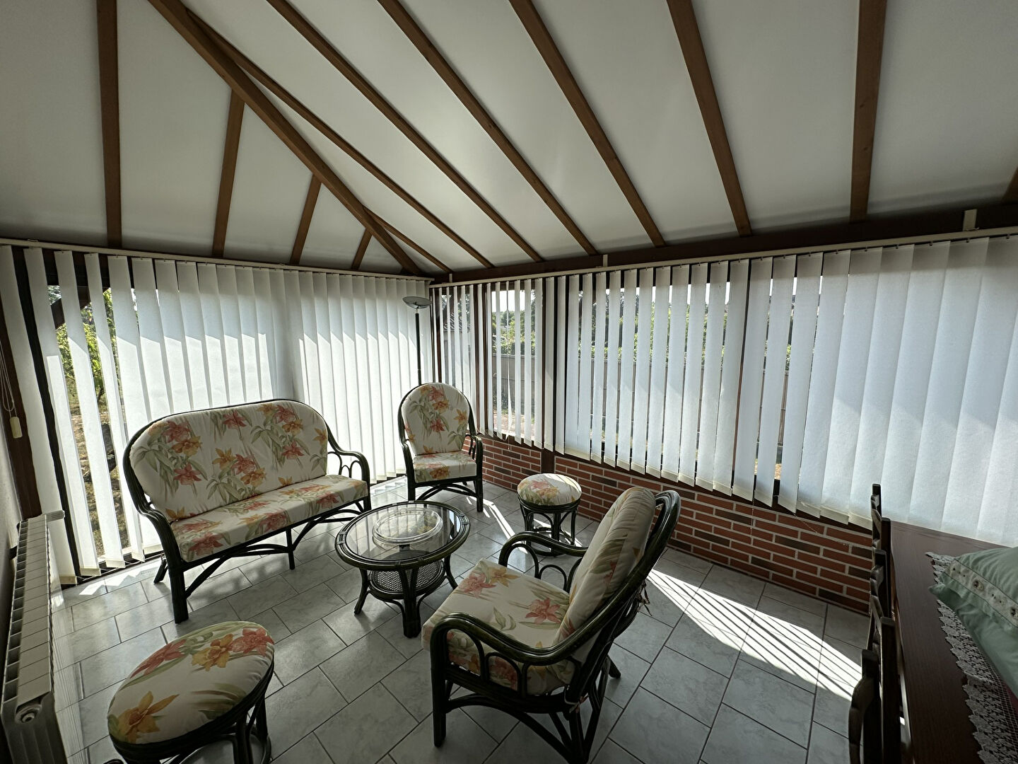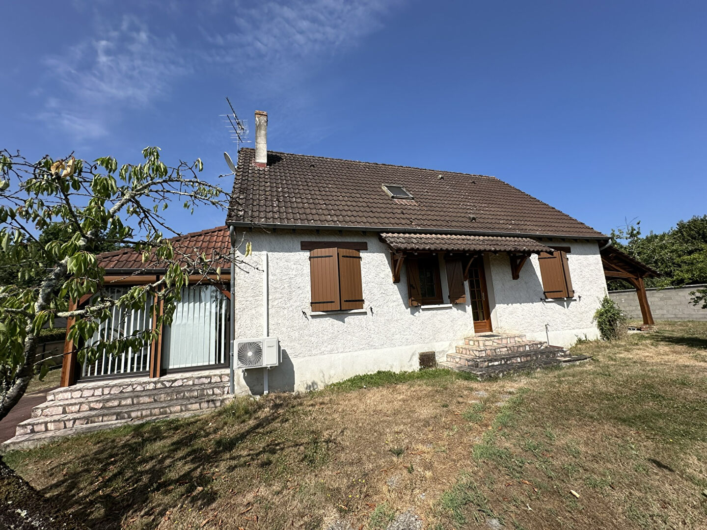 Belle construction des années 80 composée au RDC d'une entrée sur petite véranda avec un salon séjour et cuisine équipée aménagée ouverte, une véranda servant de salle à manger, un bureau, une chambre, une salle d'eau, un wc séparé,