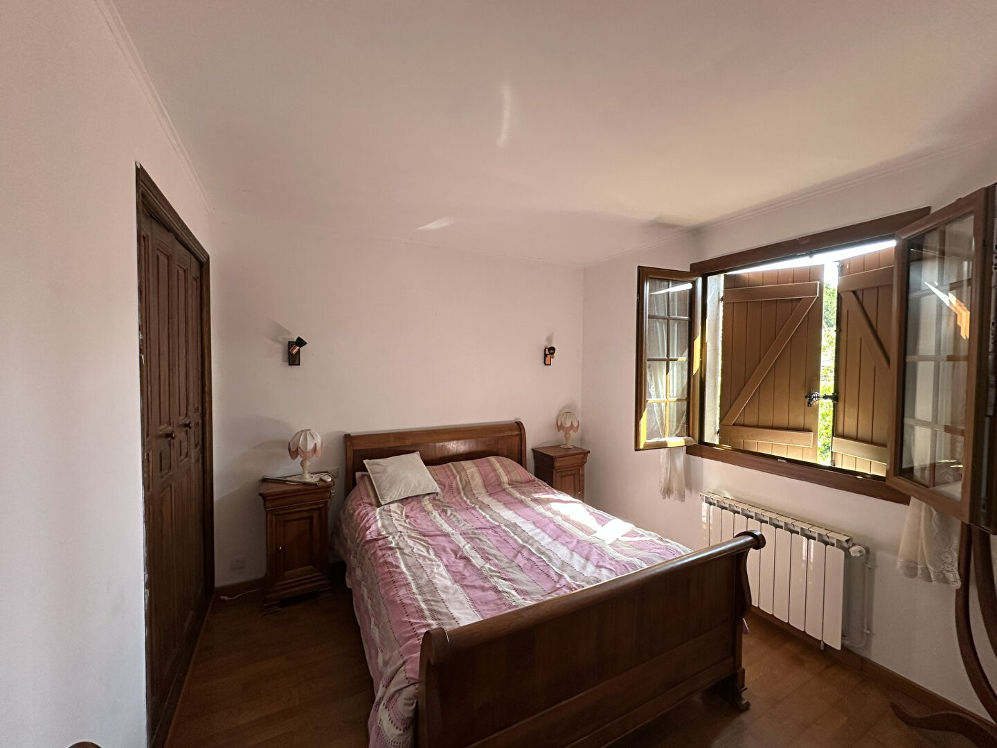 A l'étage, 2 chambres, une salle de bain avec wc, un débarras.
