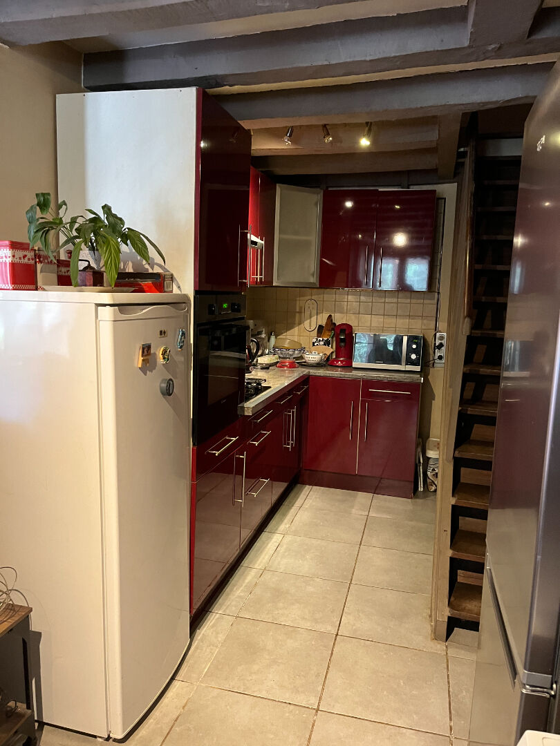 au rez-de-chaussée, entrée par véranda , cuisine aménagée semi ouverte sur salle à manger, salon avec poêle à bois donnant sur une terrasse, WC, chambre, salle d'eau .