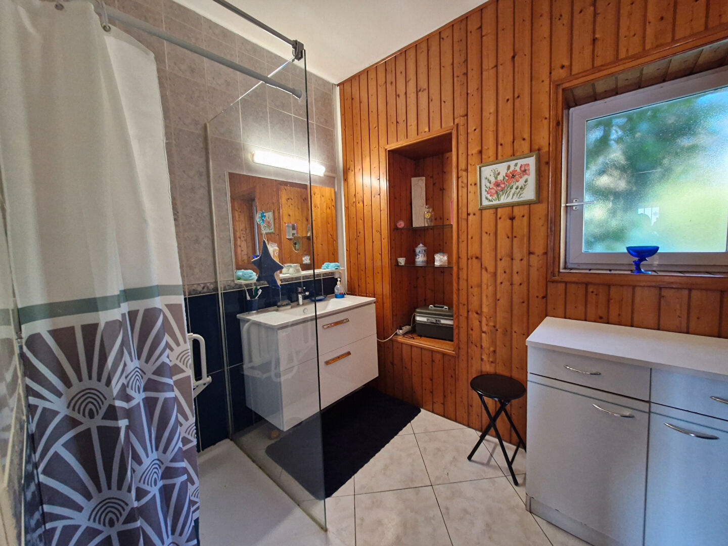 Elle se compose d'une cuisine aménagée, à moderniser selon vos goûts, ouvrant sur une spacieuse pièce de vie chaleureuse dotée d'un radiateur à pierre de lave pour un confort optimal. Vous y trouverez également un cellier, un dégagement distribuant un WC indépendant, une salle d'eau ainsi que deux grandes chambres lumineuses de plus de 12 m² chacune.