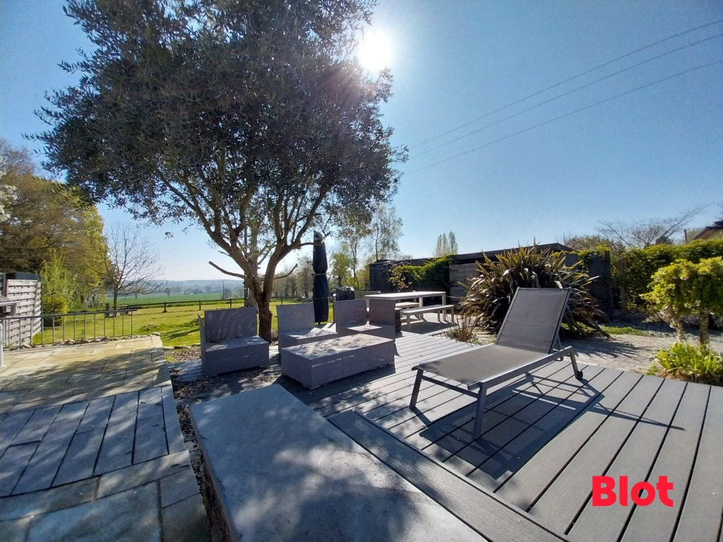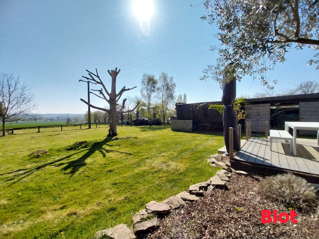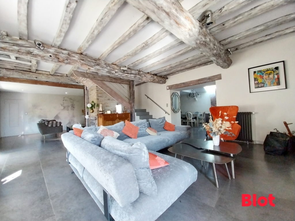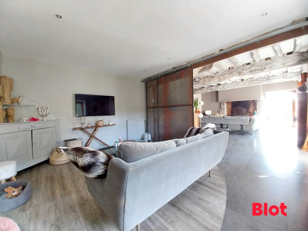 Cette longère avec cachet vous offre au RDC, un grand salon double avec cheminée, une salle à manger ouverte sur la cuisine aménagée équipée avec vue imprenable sur la campagne.