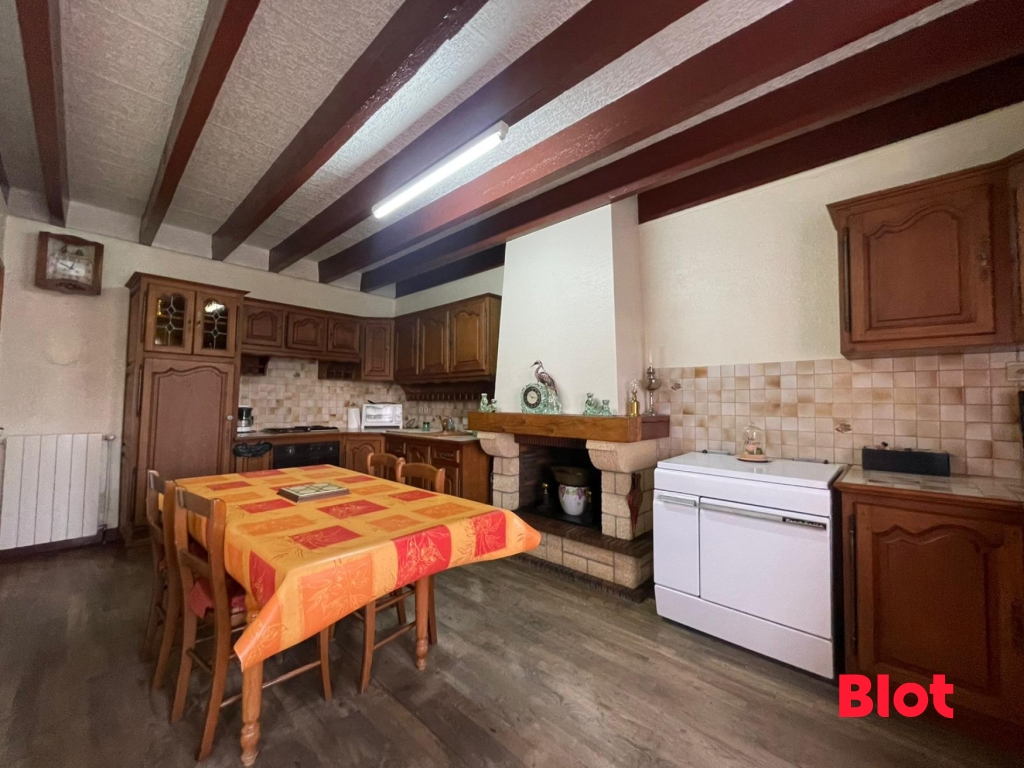 Au rez-de-chaussée, vous profiterez d'une cuisine avec cheminée, d'un séjour lumineux, d'une chambre, d'une salle de bains et de WC séparés.