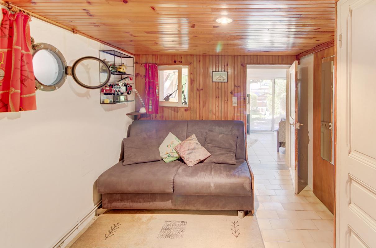 En rez-de-jardin : deux chambres confortables, une pièce polyvalente, salle d'eau et WC.