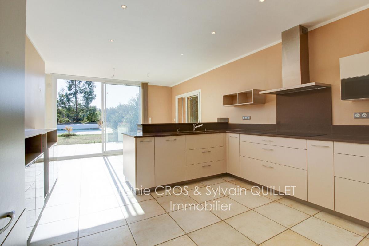 4 chambres à l'étage avec leurs SDE privatives ainsi que des pièces annexes forment la partie supérieure tandis que le RDC dispose de 2 chambres dont une suite parentale avec dressing et SDE privative, d'un SALON, cuisine dinatoire, buanderie et WC . Tous ces espaces sont majoritairement tournés vers le jardin avec vue piscine,
