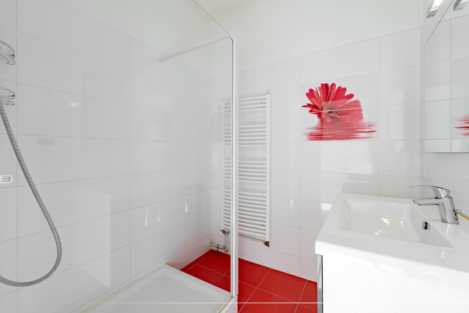 Rdc : Entrée avec placard, pièce de vie triple avec une double orientation (sud-est et sud-ouest), une cuisine aménagée partiellement séparée, wc séparé avec lave-main, buanderie.