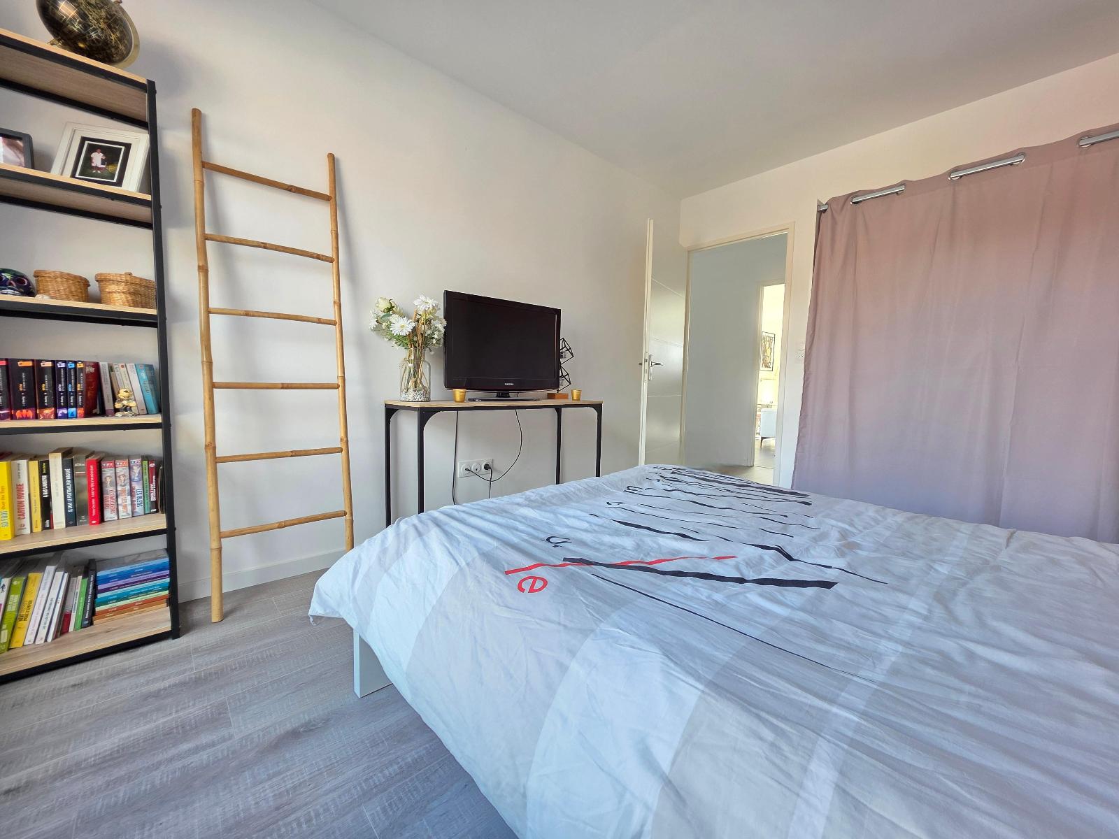 L'espace nuit propose deux chambres confortables (12.4 m² et 10 m²), une salle d'eau moderne avec douche à l'italienne et meuble vasque, ainsi qu'un WC séparé, une buanderie et un cellier.