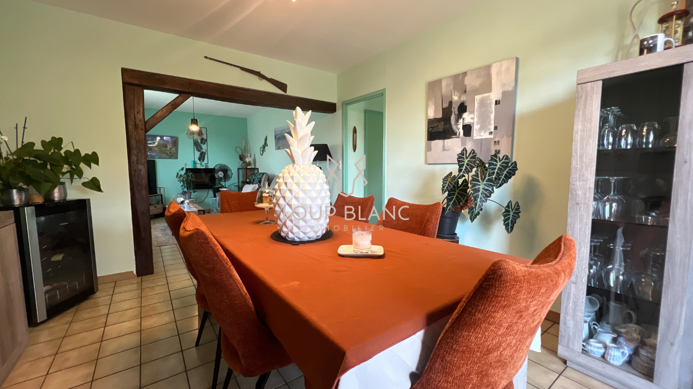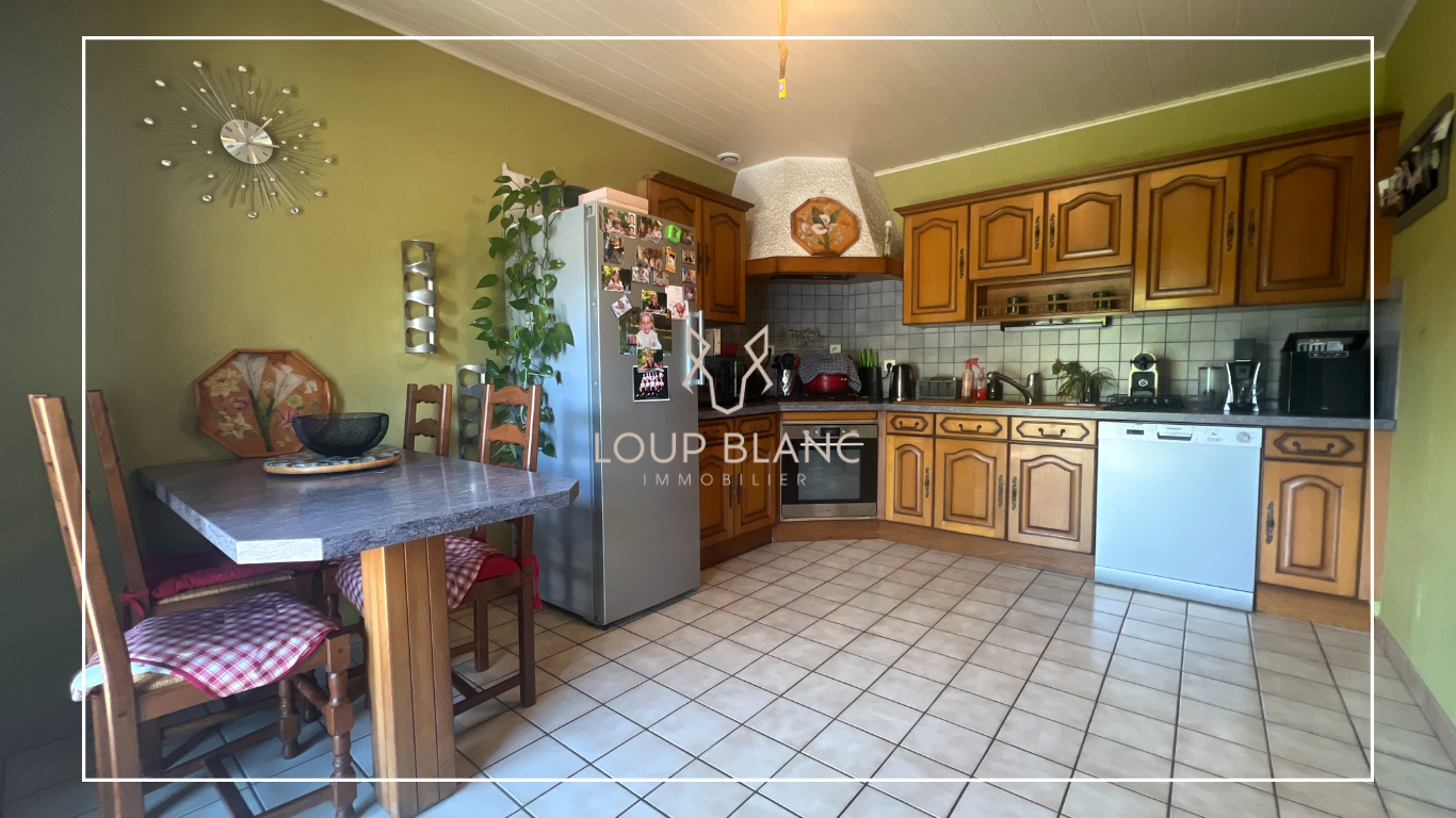 LOUP BLANC Immobilier vous propose à la vente, sur la commune d'Héricourt, cette maison familiale de 115 m2 habitables édifiée sur un terrain de 8 ares. Construite en 1993, cette maison entretenue avec soin vous séduira par son agencement fonctionnel et sa localisation pratique, proche des commodités. Elle se compose au rez-de-chaussée d'une entrée, d'une cuisine indépendante, équipée et aménagée, d'un salon / salle à manger lumineux de 30 m2 avec accès direct à la terrasse, ainsi qu'un WC. À l'étage, vous trouverez quatre chambres, un second WC, ainsi qu'une salle de bains disposant à la fois d'une douche et d'une baignoire, idéale pour toute la famille. La maison dispose également d'un garage, de la fibre, et offre un bon niveau d'équipement pour votre confort. Caractéristiques complémentaires : Chauffage gaz par chaudière neuve (2023) Double vitrage aluminium et volets aluminium installés en 2017 Velux avec volets solaires Toiture nettoyée récemment (il y a 2 ans) Taxe foncière : 800 EUR L'avis de Maxime : 'Maison agréable et bien entretenue, parfaite pour une famille. Elle bénéficie de 4 vraies chambres, d'un espace de vie ouvert sur l'extérieur, et d'un excellent rapport qualité / prix à Héricourt'