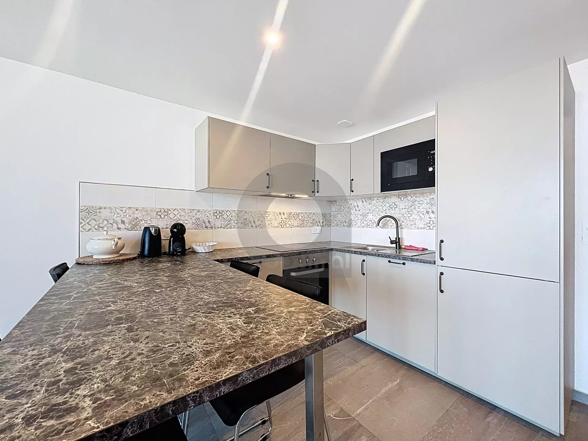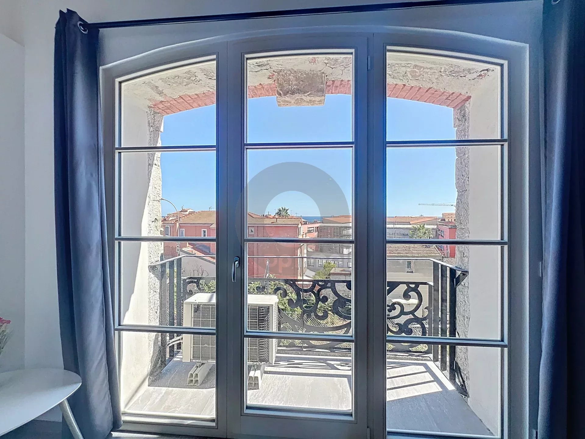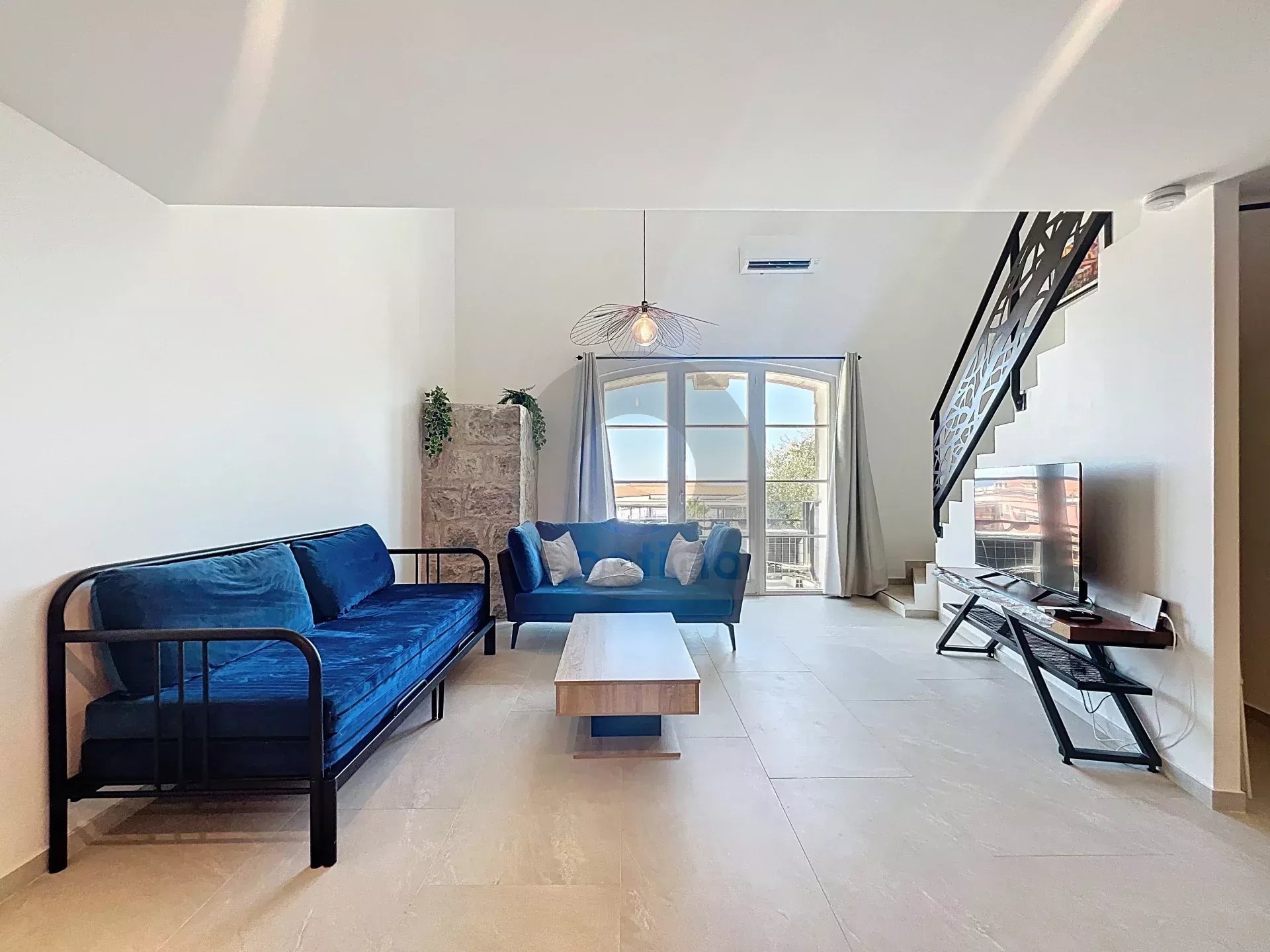 - 1er appartement : deux pièces en duplex de 49.81m² composé d'un séjour avec cuisine américaine entièrement meublée et équipée donnant sur un balcon, à l'étage, une chambre avec une salle d'eau et WC.