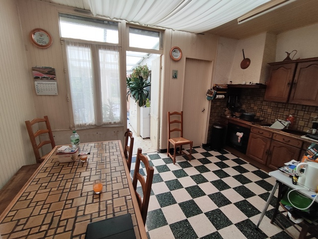 Elle est composé d'une entrée, d'un salon/séjour, d'une grande cuisine et arrière cuisine, une salle d'eau et un WC.