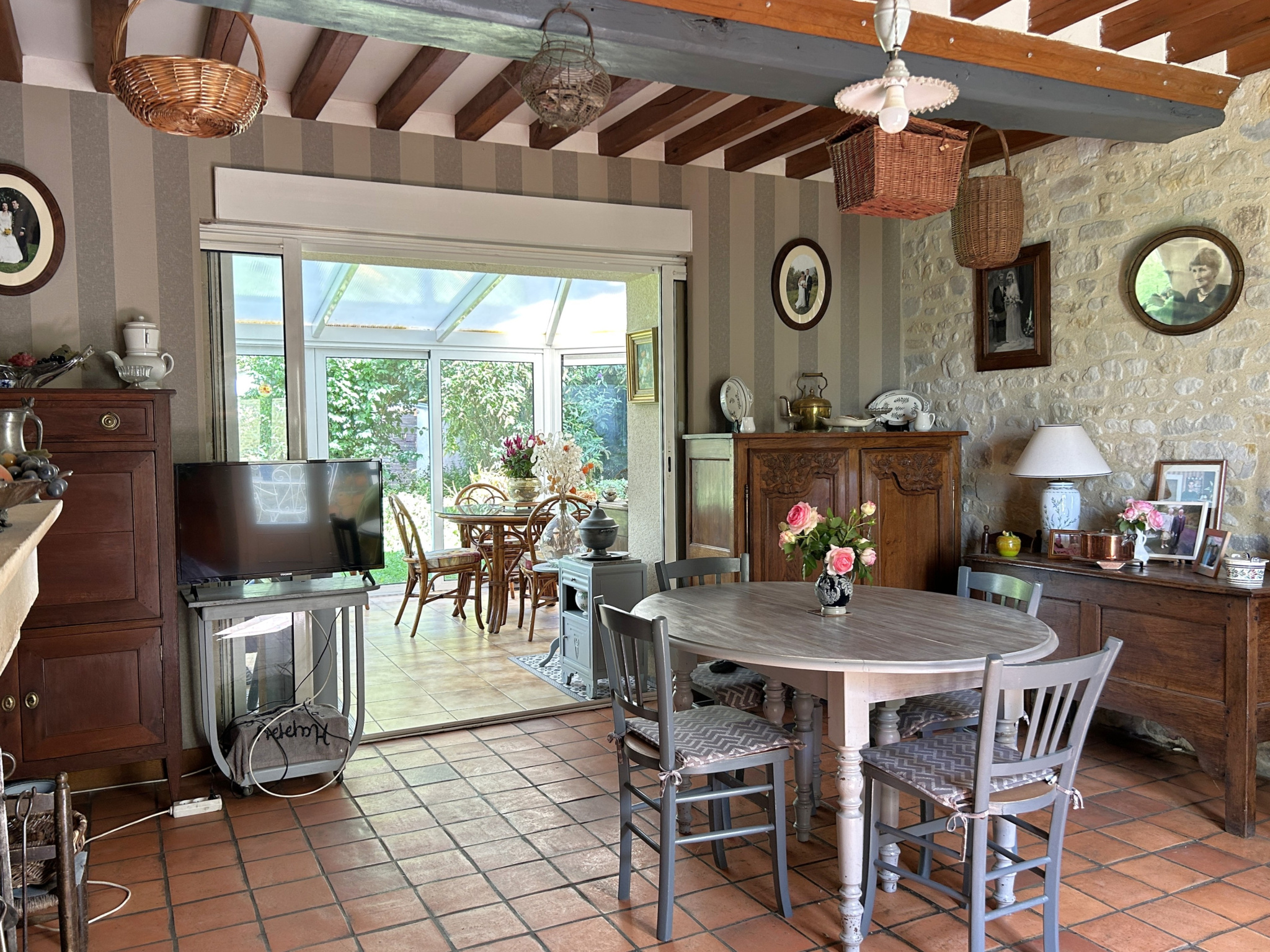A 8 minutes de Bayeux, votre agence sur mesure vous propose cette maison ancienne de 150m2 implantée sur un terrain arboré de 4049m2. Alliant charme et authenticité, elle dispose au rez-de-chaussée d'une cuisine aménagée et équipée avec accès direct à un garage accolé, d'un séjour chaleureux agrémenté d'une cheminée et prolongé par une véranda lumineuse donnant sur le jardin. A l'étage, trois chambres, avec possibilité d'une quatrième, accueillent l'espace nuit. Les pièces conservent le cachet de l'ancien, même si elles profitent d'une luminosité plus douce, à l'exception du séjour particulièrement lumineux. Chaque espace est réchauffé par la présence de cheminées, et l'ensemble bénéficie d'une exposition sud-ouest. Une ancienne boulangerie indépendante et un second garage, actuellement utilisé en atelier, complètent ce bien. Le double vitrage et le chauffage au gaz assurent le confort. Le terrain, soigneusement arboré, offre un cadre verdoyant et paisible malgré la proximité de la route. Un bien rare sur le secteur, à visiter sans attendre. Just in Home, vos agences immobilières à Bayeux et Carpiquet ! Les informations sur les risques auxquels ce bien est exposé sont disponibles sur le site Géorisques : www.georisques.gouv.fr. Contactez dès maintenant Magali PHILIPPE-HAREL (EI) au 06.62.44.21.42 Agent commercial immatriculé au RSAC de CAEN sous le numéro 839 646 023. Just in Home deux agences immobilières de confiance à Bayeux et Carpiquet.