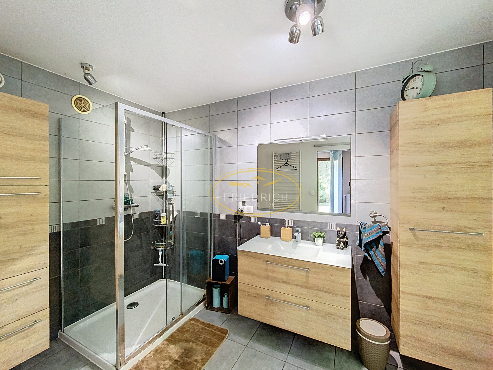 - Salle d'eau (4,00m2), sol carrelage, douche, meuble vasque.