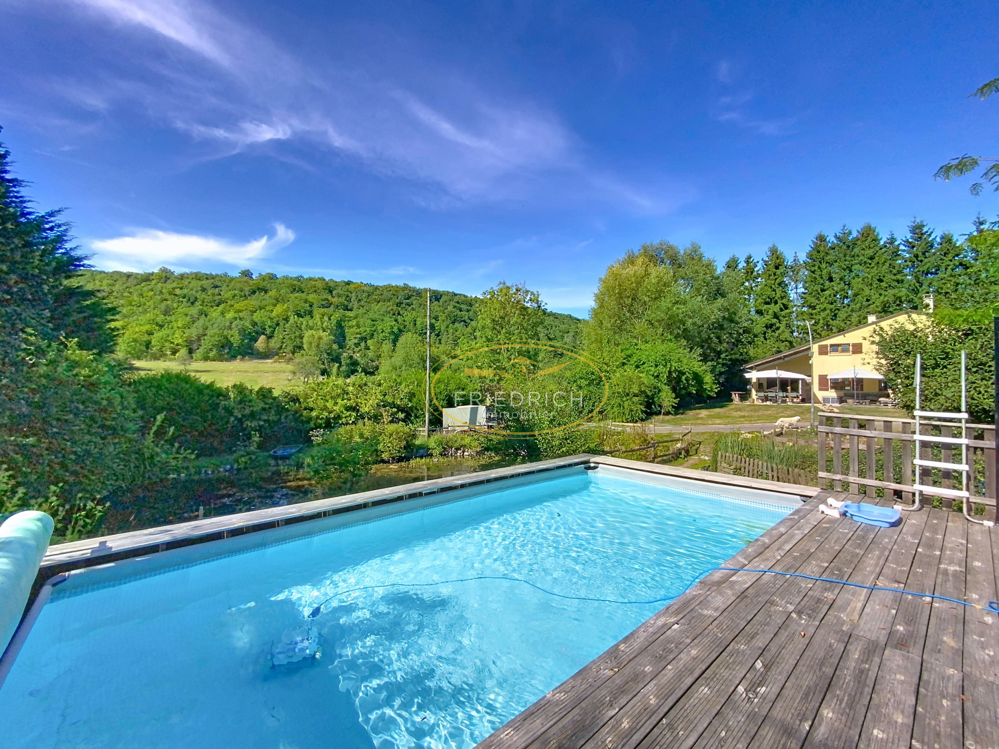 Les atouts qui font toute la différence, un petit étang alimenté par des sources (avec des carpes), une piscine hors sol aménagée, des arbres fruitiers et d'ornement + potager, emplacement prévu pour un terrain de pétanque.