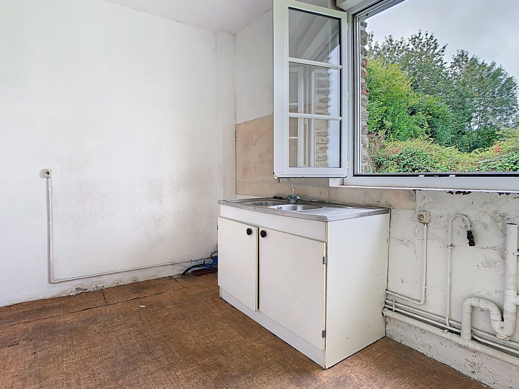 Celle-ci comprend au rez-de-chaussée : une salle, une pièce de vie avec cheminée, une cuisine séparée, dégagement, un WC et une cave. À l'étage nous retrouvons un couloir desservant deux chambres, une salle d'eau et un grenier potentiellement améneagable.