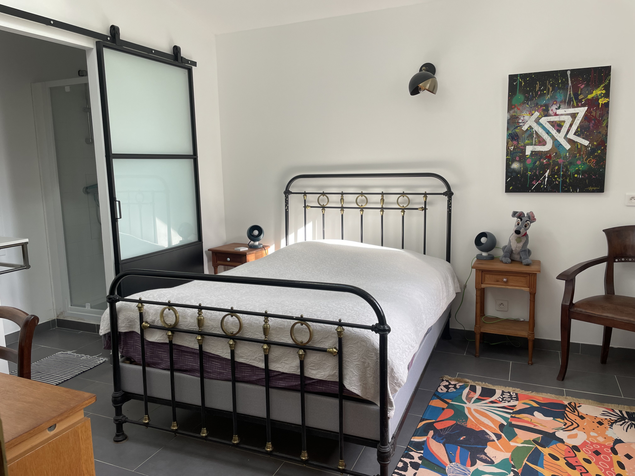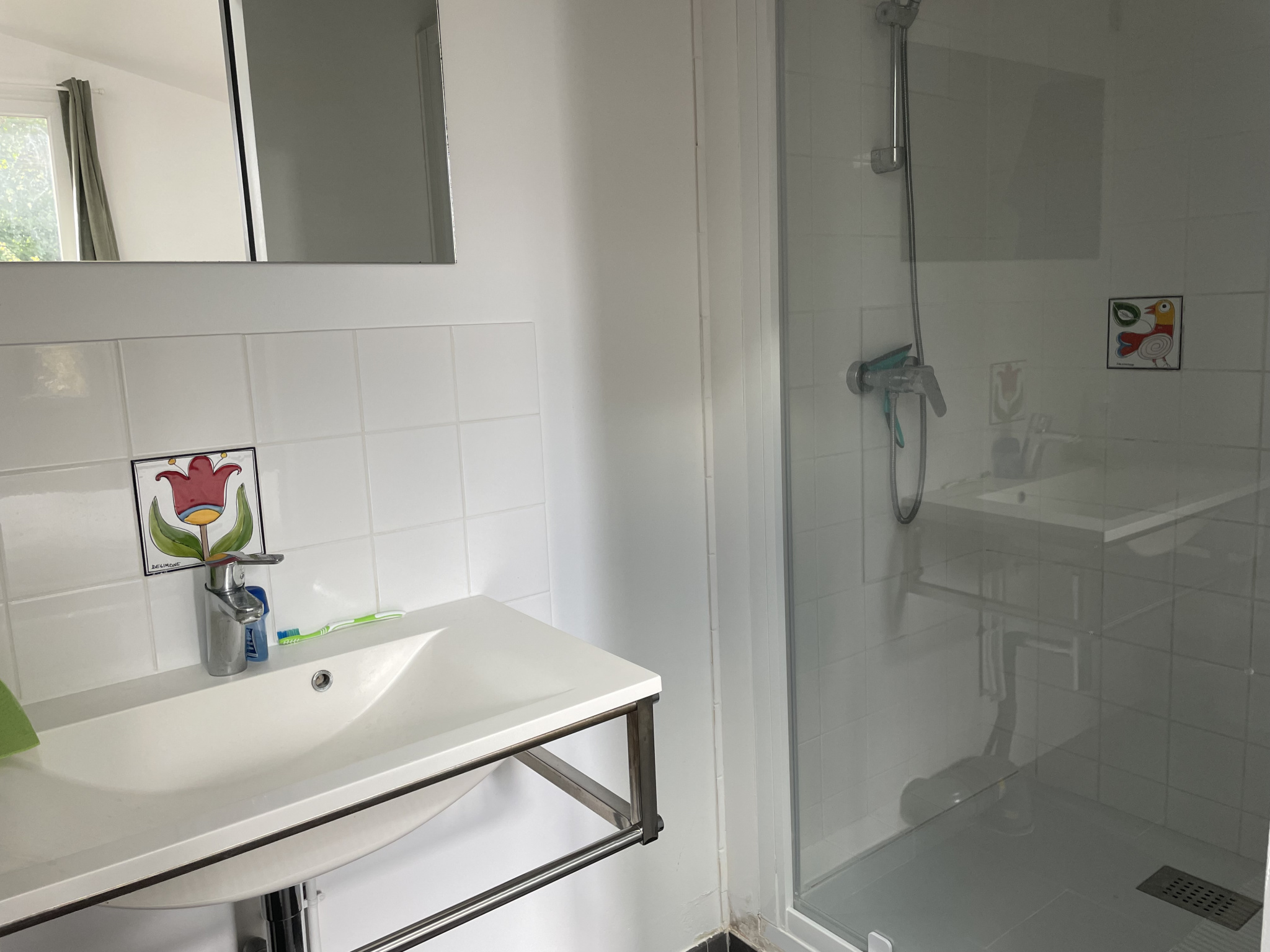 Etage: Pièce palière à usage de bureau, 2 chambres, salle d'eau et wc.