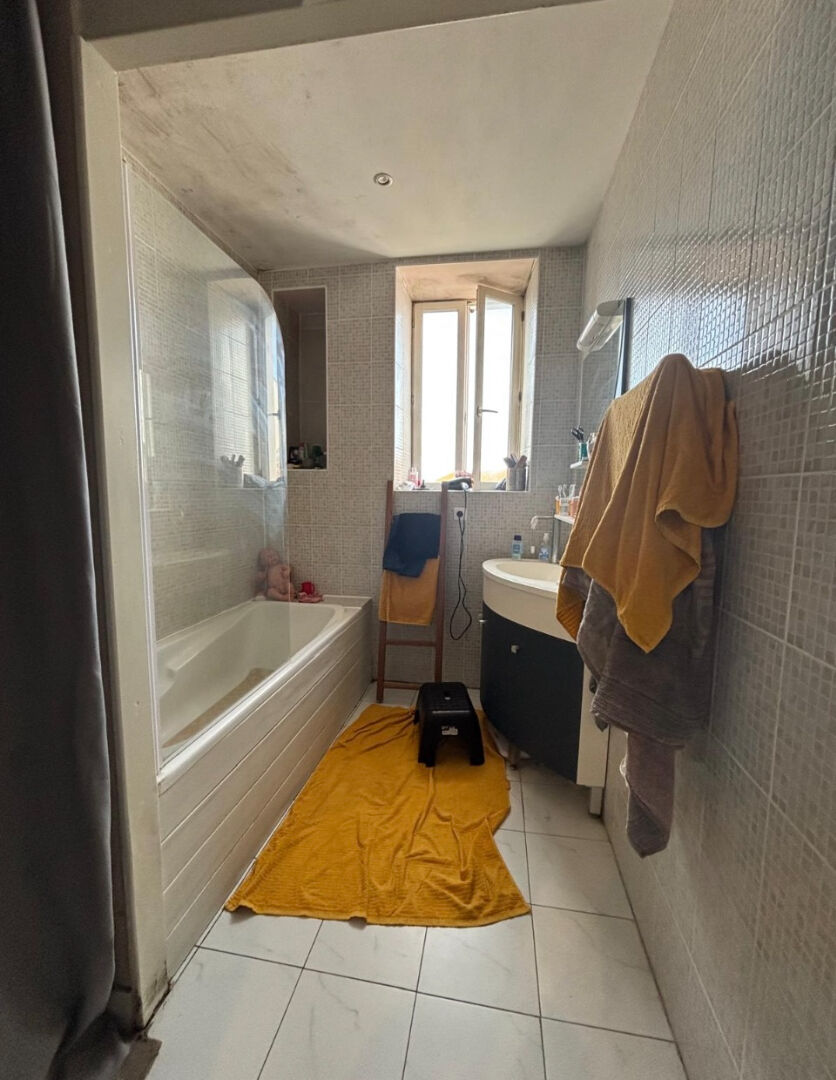 à l'étage, salon de 16 m², cuisine équipée aménagée 9 m², terrasse 10 m², séjour12 m², WC séparé, salle de bains 5 m², chambre de 12 m² (placard);