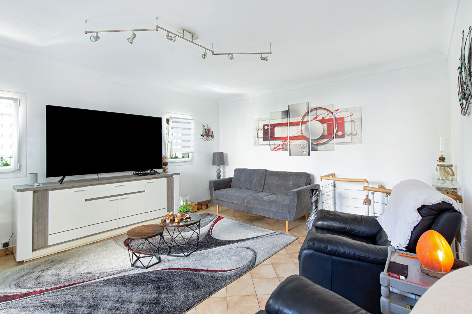 Séjour, cuisine équipée et aménagée, trois chambres, deux salles d'eau,