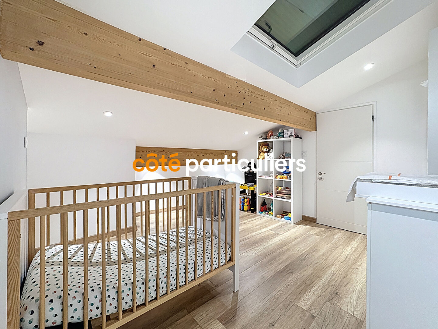 Étage : chambre d'enfant ou bureau, salle de bains, WC séparés, nombreux rangements et dressings.