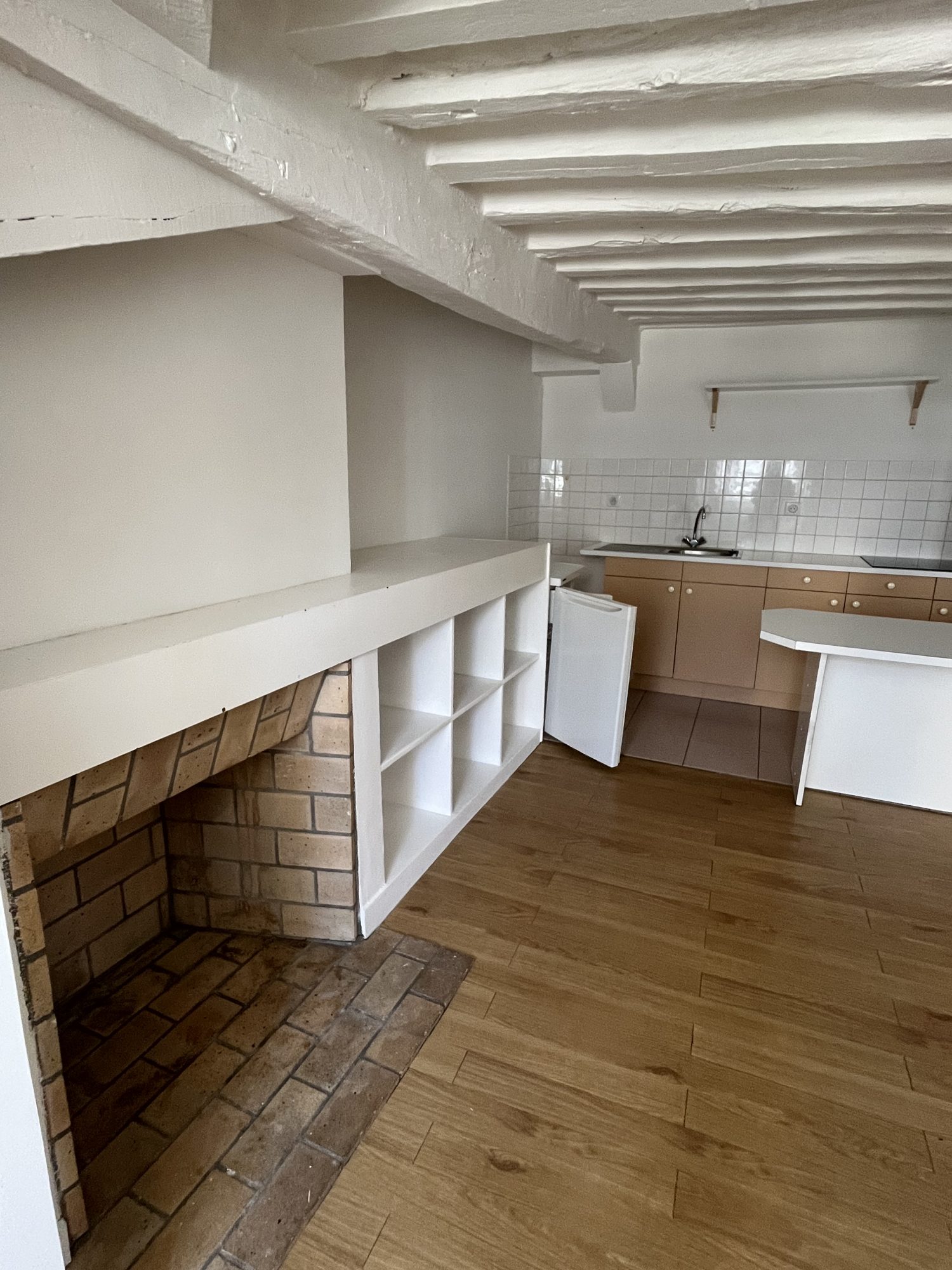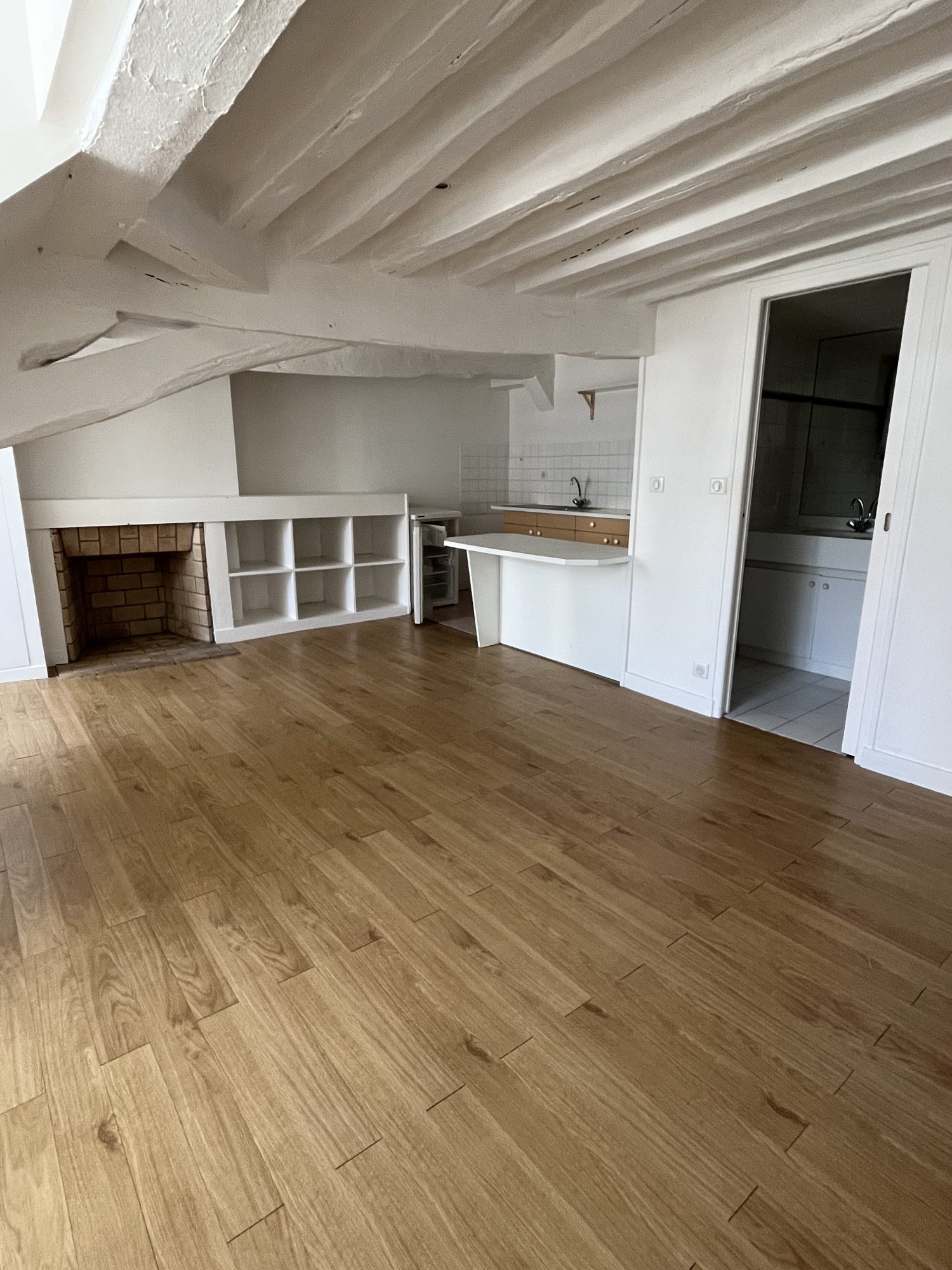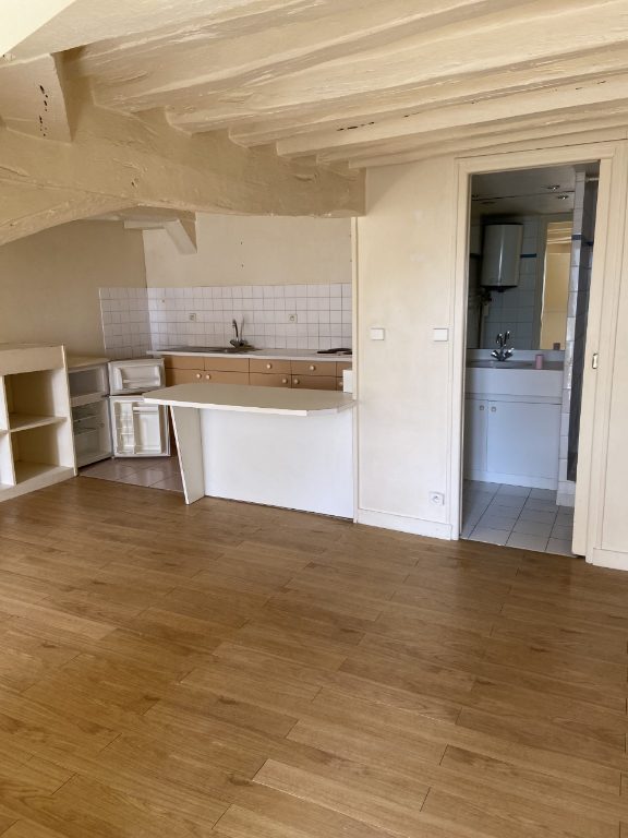 Une pièce principale avec une kitchenette équipée et aménagée, une salle d'eau, WC.