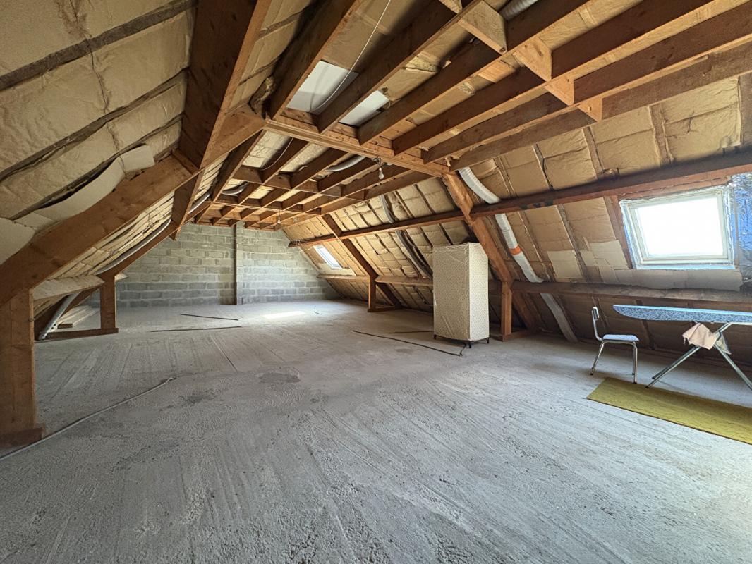 Dans le garage (avec WC indépendant et point buanderie), vous accédez à l'étage à un espace de 15m2, et à un plateau sur dalle béton de près de 60 m2 vous permettant d'envisager de nouvelles chambres et des sanitaires, avec possibilité d'accès indépendant.
