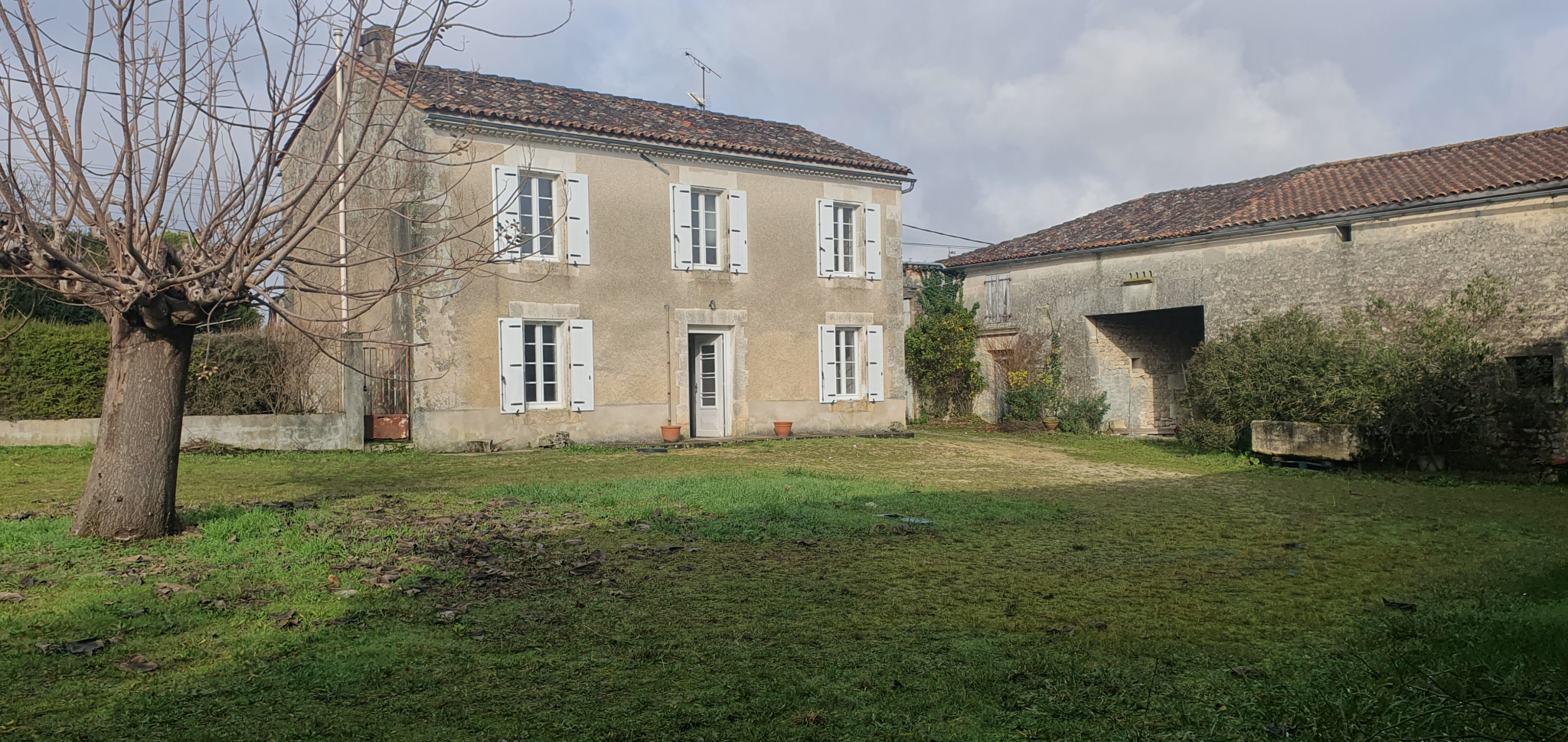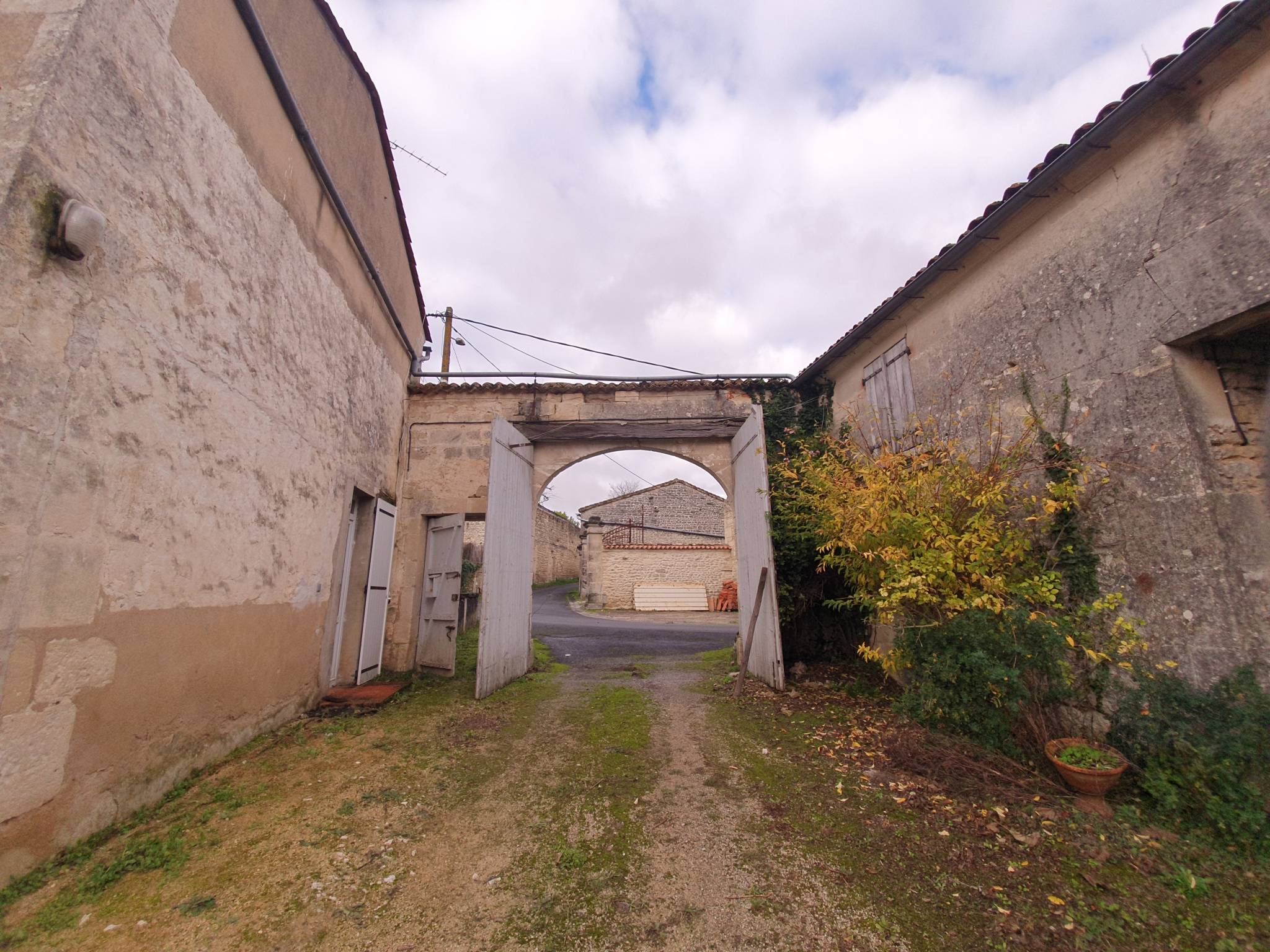 Saint Saturnin 16290 idéalement située à 10 minutes d'Angoulême 16000 et 15 minutes de Jarnac 16200 .Cet impressionnant corps de ferme bien préservé derrière son porche de 1852 est composé de DEUX maisons d' habitations.