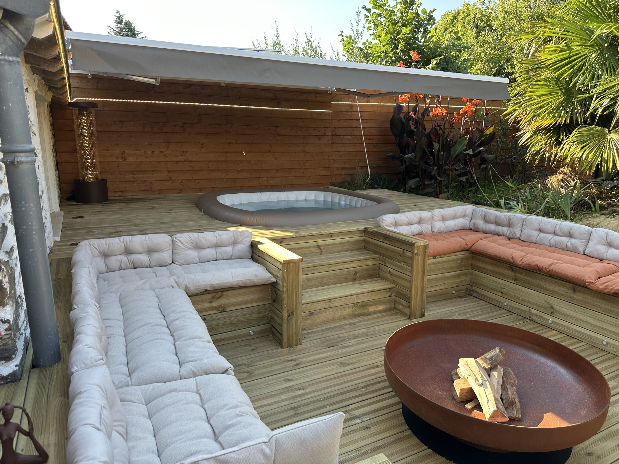 Terrasse, jacuzzi, garage, grand carport et chalet isolé récent d'environ 40 m2 pouvant parfaitement servir à un espace de travail indépendant ou l'aménagement d'un studio ! Jardin, puits.