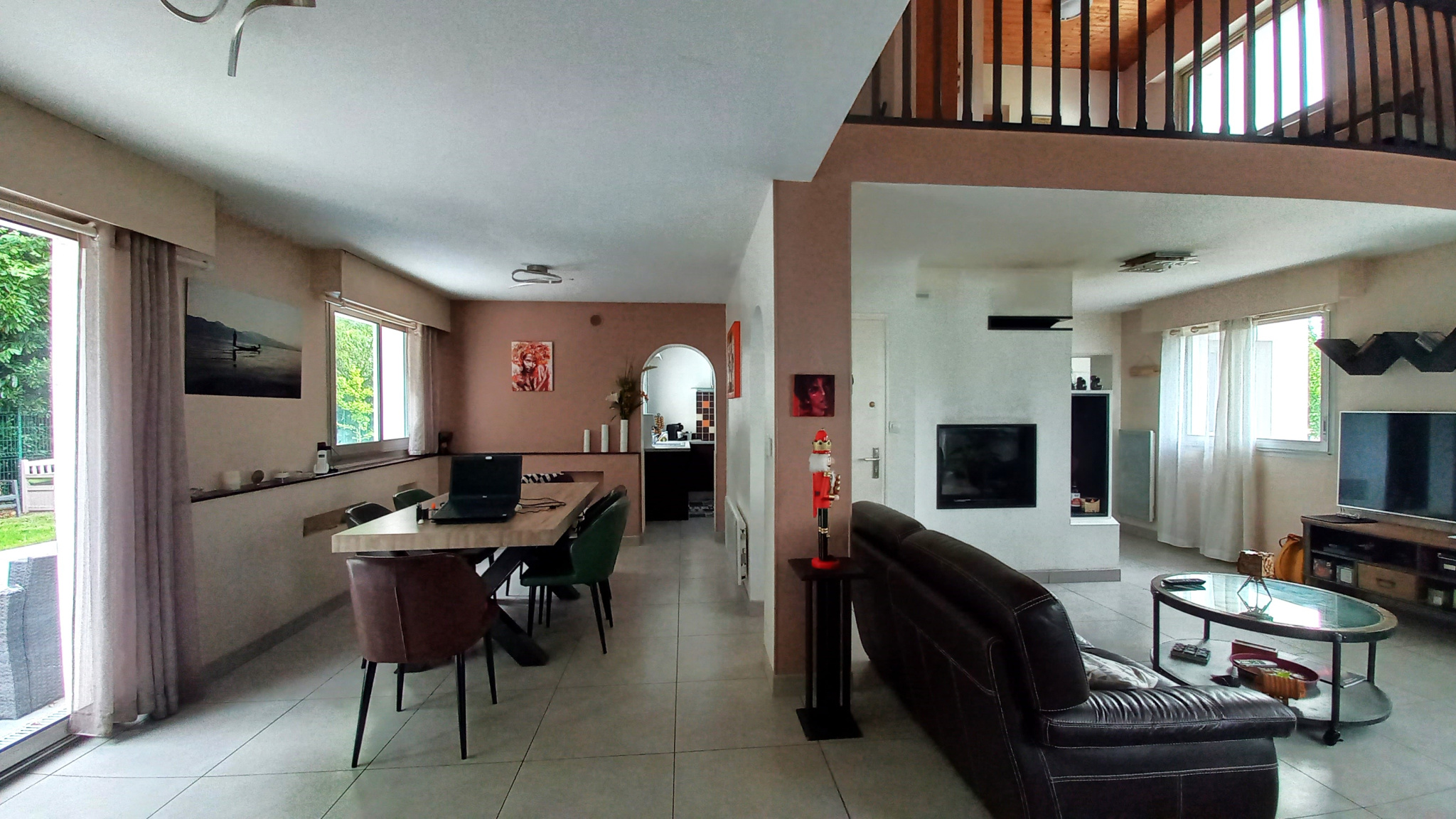 Les 142m2 se répartissent sur 2 étages. Au rez-de-chaussée une entrée, ouvre vers une pièce de vie bénéficiant de 3 expositions, hauteur sous plafond, un accès terrasse et agrémentée d'une cheminée avec insert. A suivre une cuisine séparée aménagée/équipée, une chambre avec placard, un WC séparé, une salle de bains (baignoire, douche, meubles de rangements et double vasque), un cellier et un espace de stockage avec porte de garage motorisé. A l'étage, une grande mezzanine dessert 3 chambres et une salle d'eau avec wc.