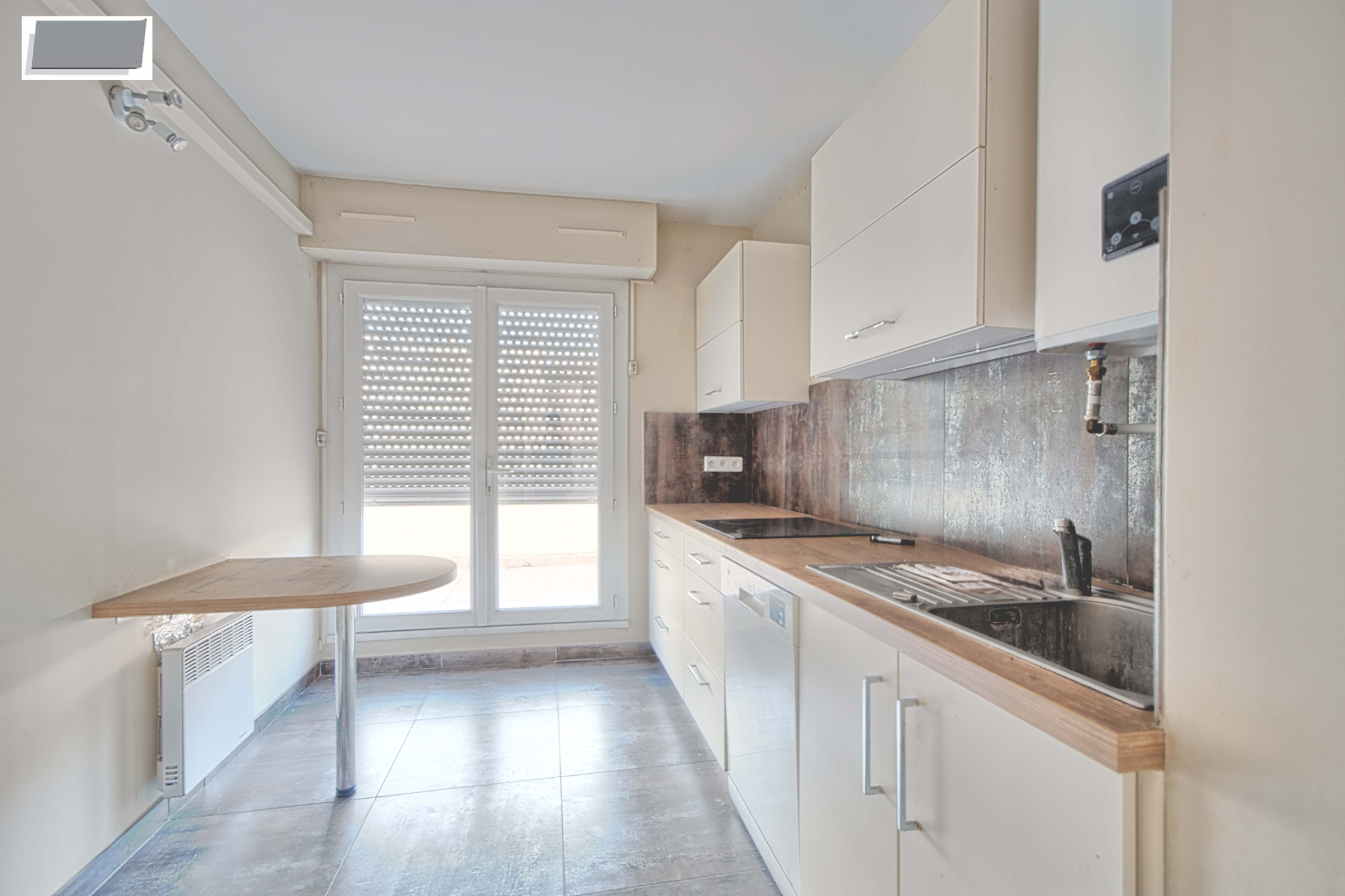 Cet appartement traversant en dernier étage avec ascenseur, comprend un séjour, une chambre spacieuse avec placards intégrés, une salle d'eau, un WC séparé, ainsi qu'une cuisine équipée.