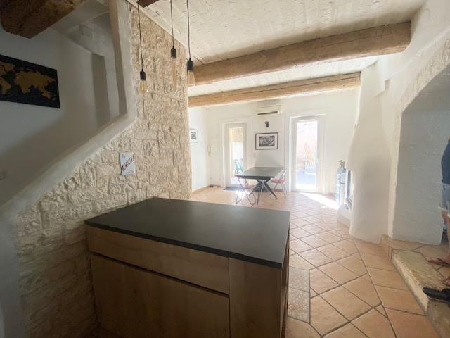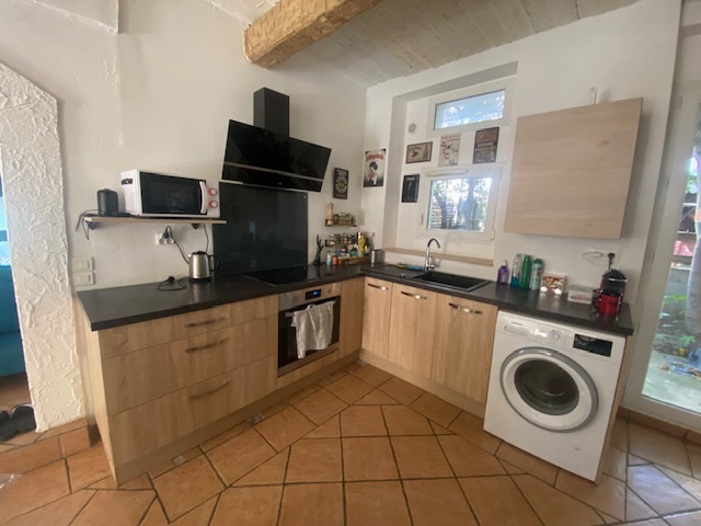 Elle est composée d'une entrée, cuisine aménagée et équipée ouverte sur le séjour, un bureau.