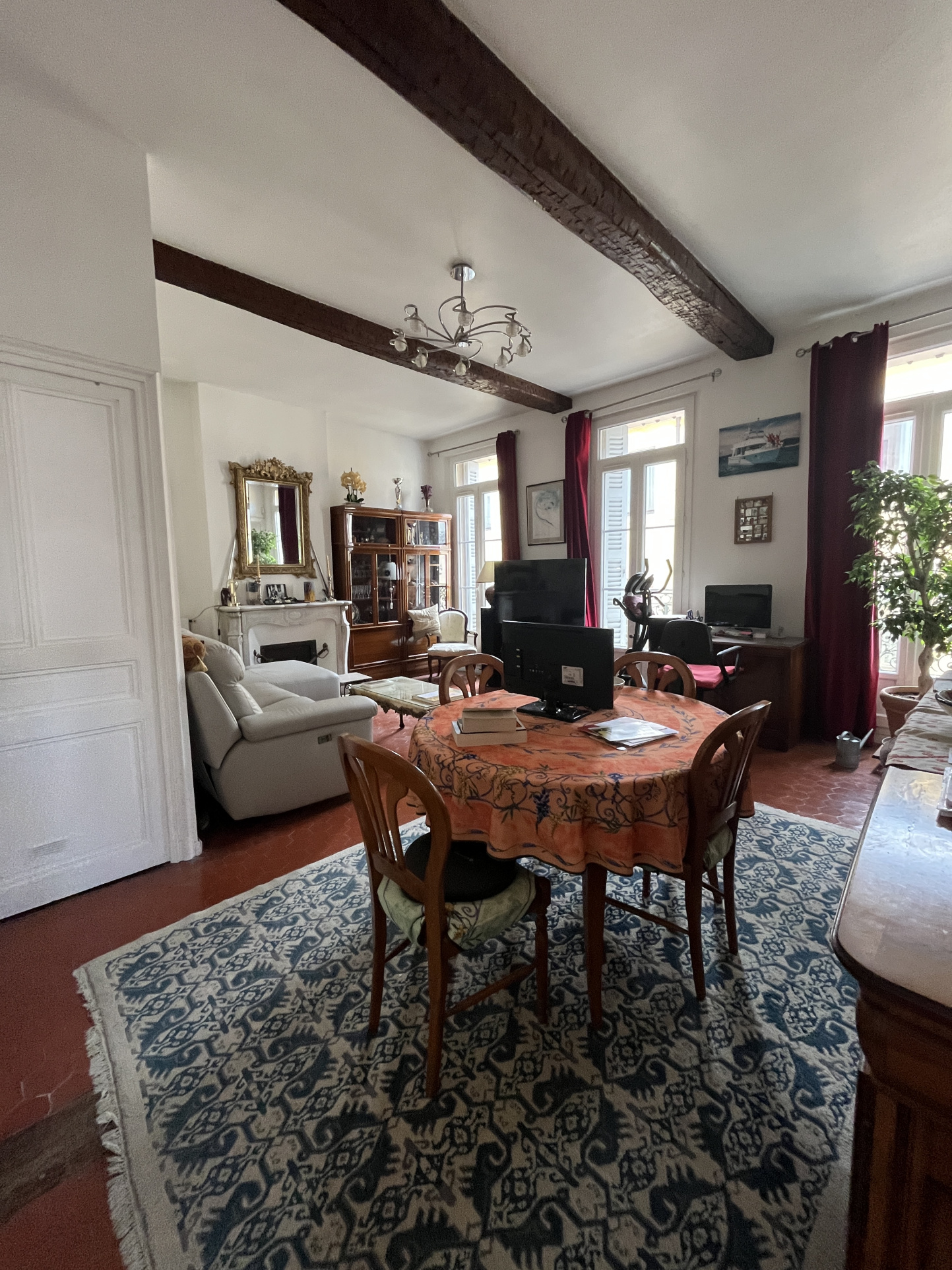 Toulon, Haute ville, à proximité immédiate de la gare, le marché, collège, écoles appartement bourgeois 76M2 au deuxième étage d'un immeuble bourgeois, 3 pièces comprenant une entrée sapcieuse qui dessert plusieurs rangements, un toilette séparé, une cuisine authentique et un vaste séjour exposé Ouest de 30M2. Une belle chambre avec placard, un bureau et une grande cave complète ce bien.
