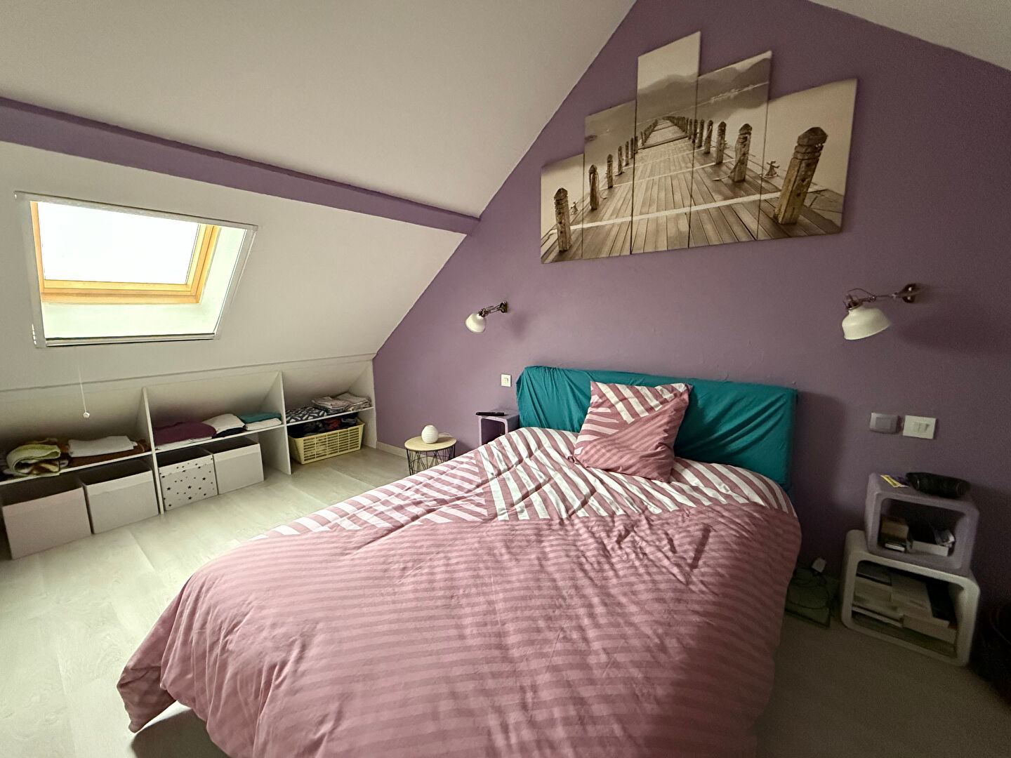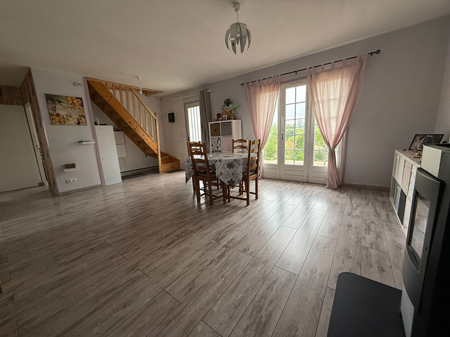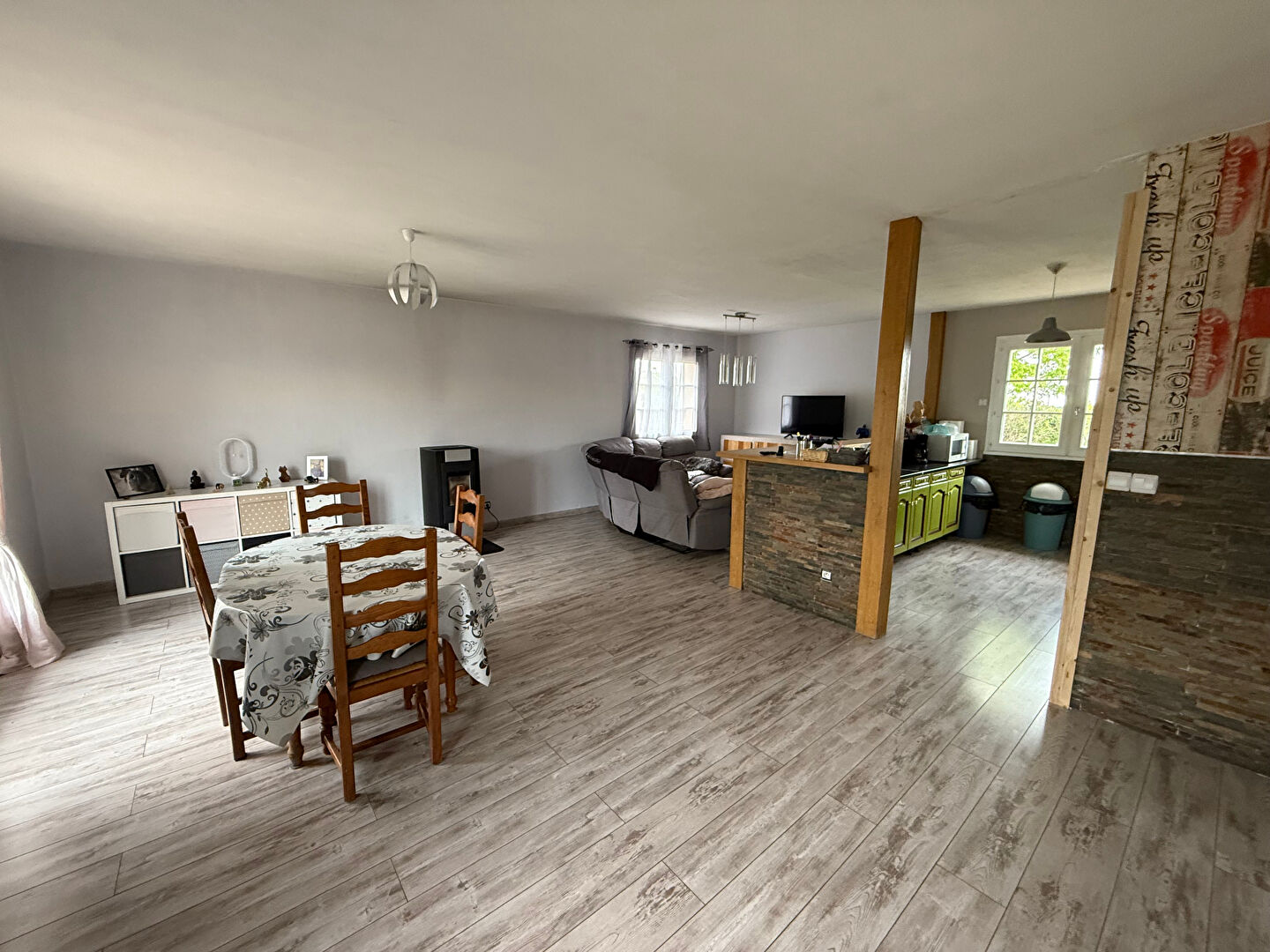 Maison d'habitation élevée sur vide sanitaire comprenant au rez-de-chaussée : hall d'entrée, cuisine aménagée ouverte sur séjour salon, dégagement, 2 chambres, salle d'eau, cellier, wc, garage ; au 1er étage mansardé : dégagement à usage de bureau, 2 chambres dont suite parentale avec salle d'eau, wc. Cour, terrain 1760 m² avec jolie vue sur la nature. DPE : D 226, chauffage électrique et poêle à granulés, tout à l'égout.
