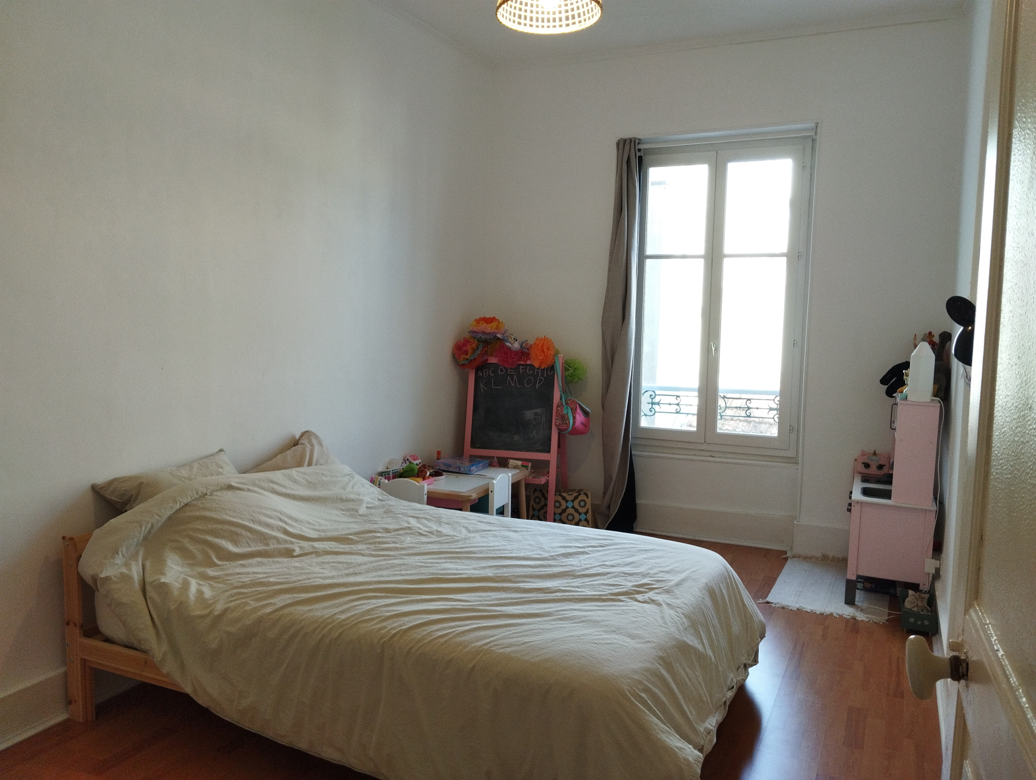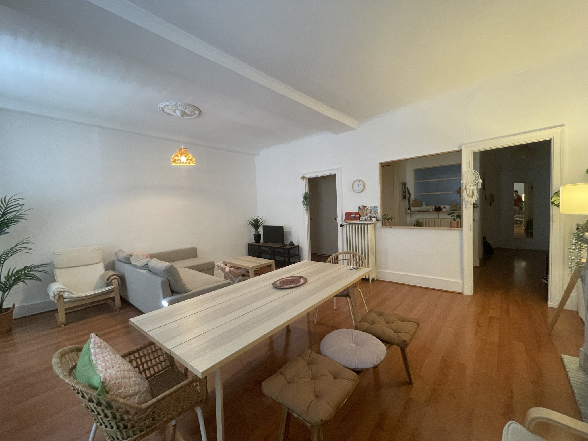Il dispose d'une belle entrée, d'un grand salon - salle à manger avec accès sur petit balcon, d'une cuisine séparée aménagée et équipée, d'un dégagement avec placard, de deux belles chambres dont une avec un placard, d'un wc séparé et d'une salle de bains.