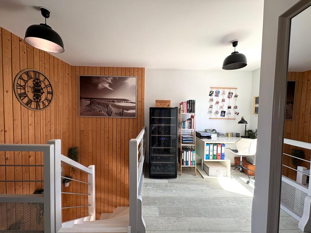 A l'étage, deux chambres, un bureau et une salle de bain complètent ce bien.