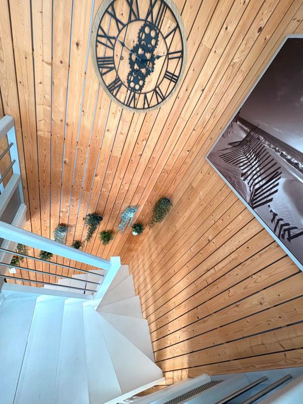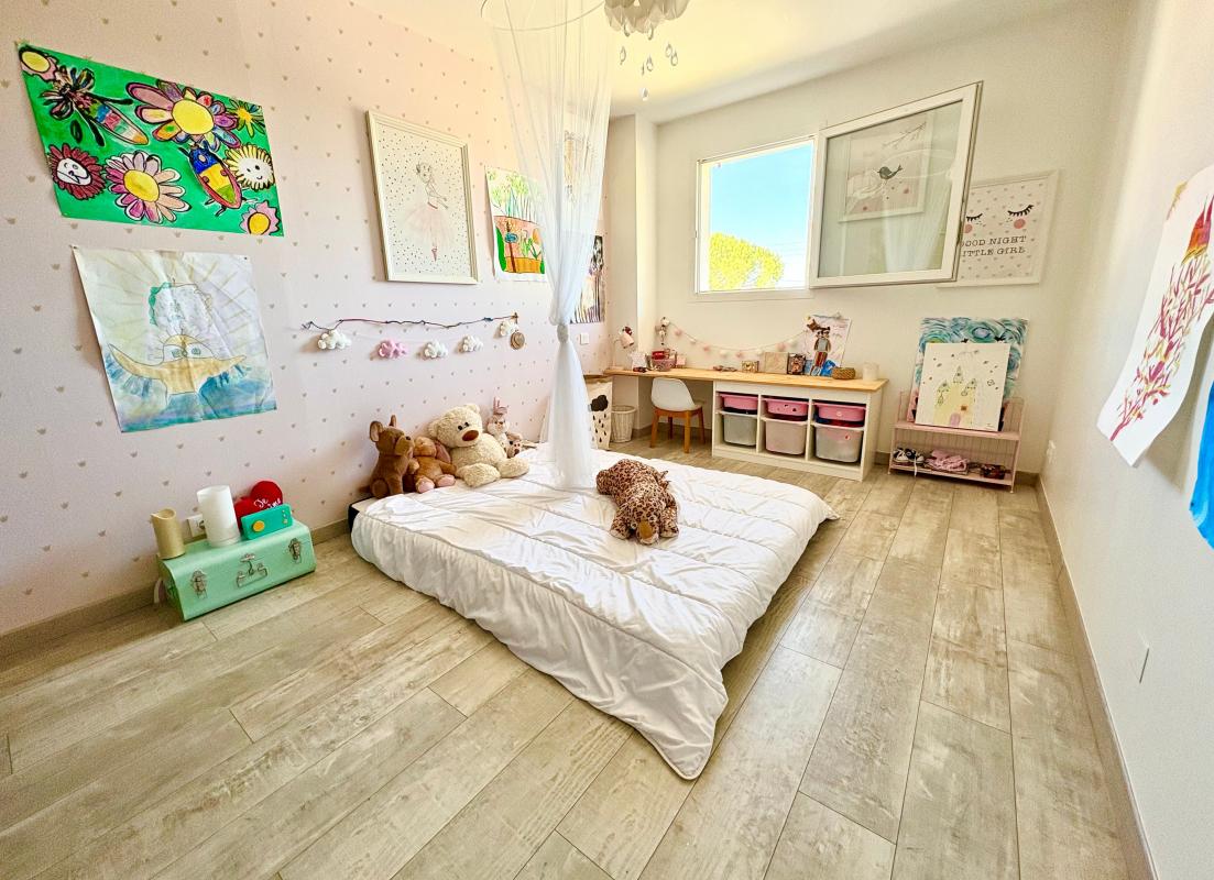 Elle se compose comme suit : au rez-de-chaussée une belle pièce de vie de près de 40 m² avec accès à la grande terrasse avec piscine ainsi qu'à la chambre parentale et au cellier.