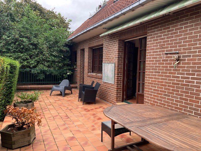 Coup de coeur pour cette construction traditionnelle brique, comprenant : hall, vaste salon-séjour avec CFB, cuisine équipée, salle de bains récente, 4 chambres, mezzanine possibilité bureau, lingerie (possibilité d'y faire une seconde pièce d'eau). Sous-sol complet avec garage. Stationnement privatif. Jardin clos et arboré.