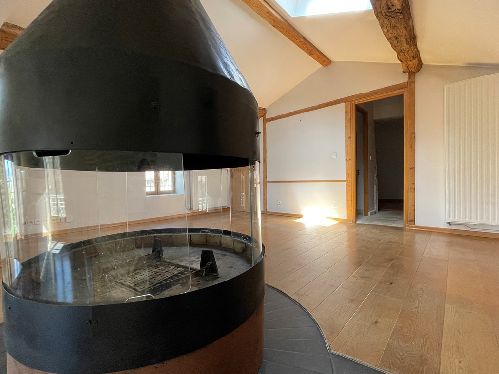 Vous profiterez d'une pièce de vie de 45 m2 très lumineuse orientée sud et ouest avec cuisine aménagée et équipée, un espace salle à manger et un espace salon autour d'un poêle à bois 360o monumental. Côté nuit, 2 chambres dont une avec placard, une salle de douches, un WC séparé avec lave-mains.