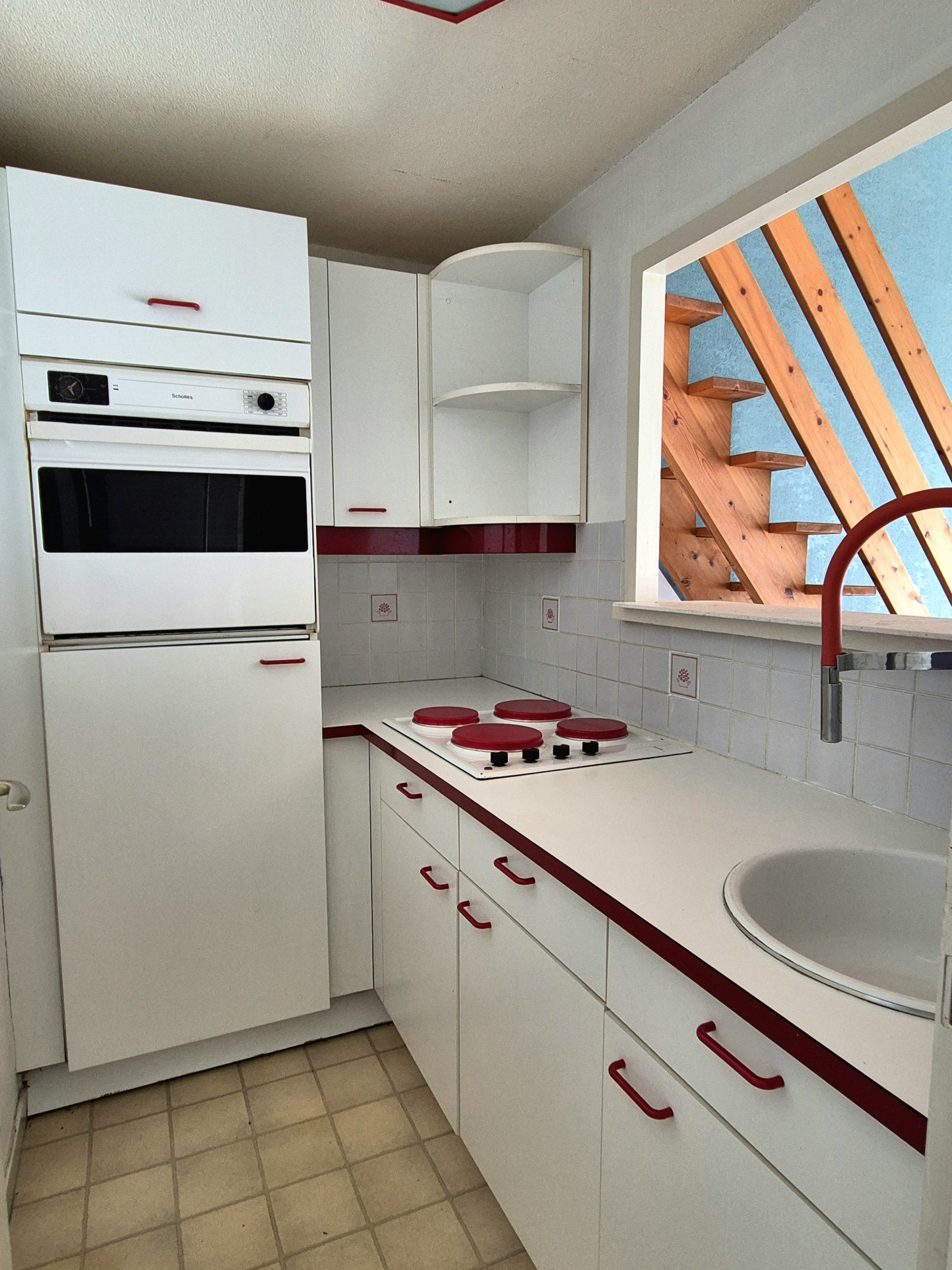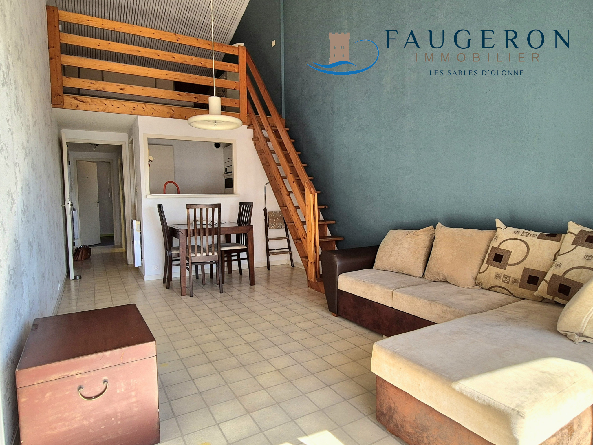LA CHAUME - A deux pas de l'Océan, accueillant Appart T2 bis de 44,25 m2 hab. : salon/séjour avec terrasse aperçu Mer, chambre au calme vue sur les toits, couchage en mezzanine avec placards, cuisine et SdB + précieux et grand Garage. Proche rivage et plage, transports en commun et pistes cyclables. Belle opportunité au juste prix !