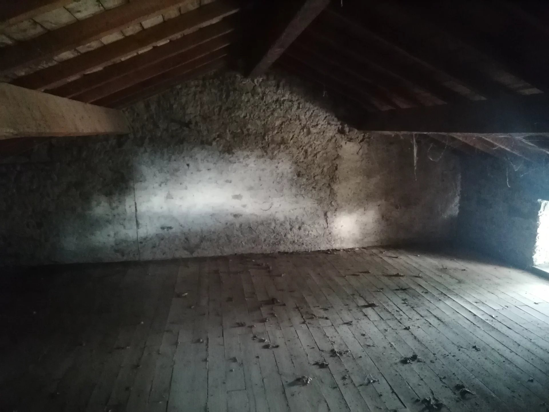 La charpente de la maison est en bon état mais la couverture sera à revoir, le bâti est en bon état, solivages et planchers semblent sains, compteurs d’électricités et eau présents, huisseries simple vitrage, assainissement individuel à refaire (étude de sol et devis établis).
