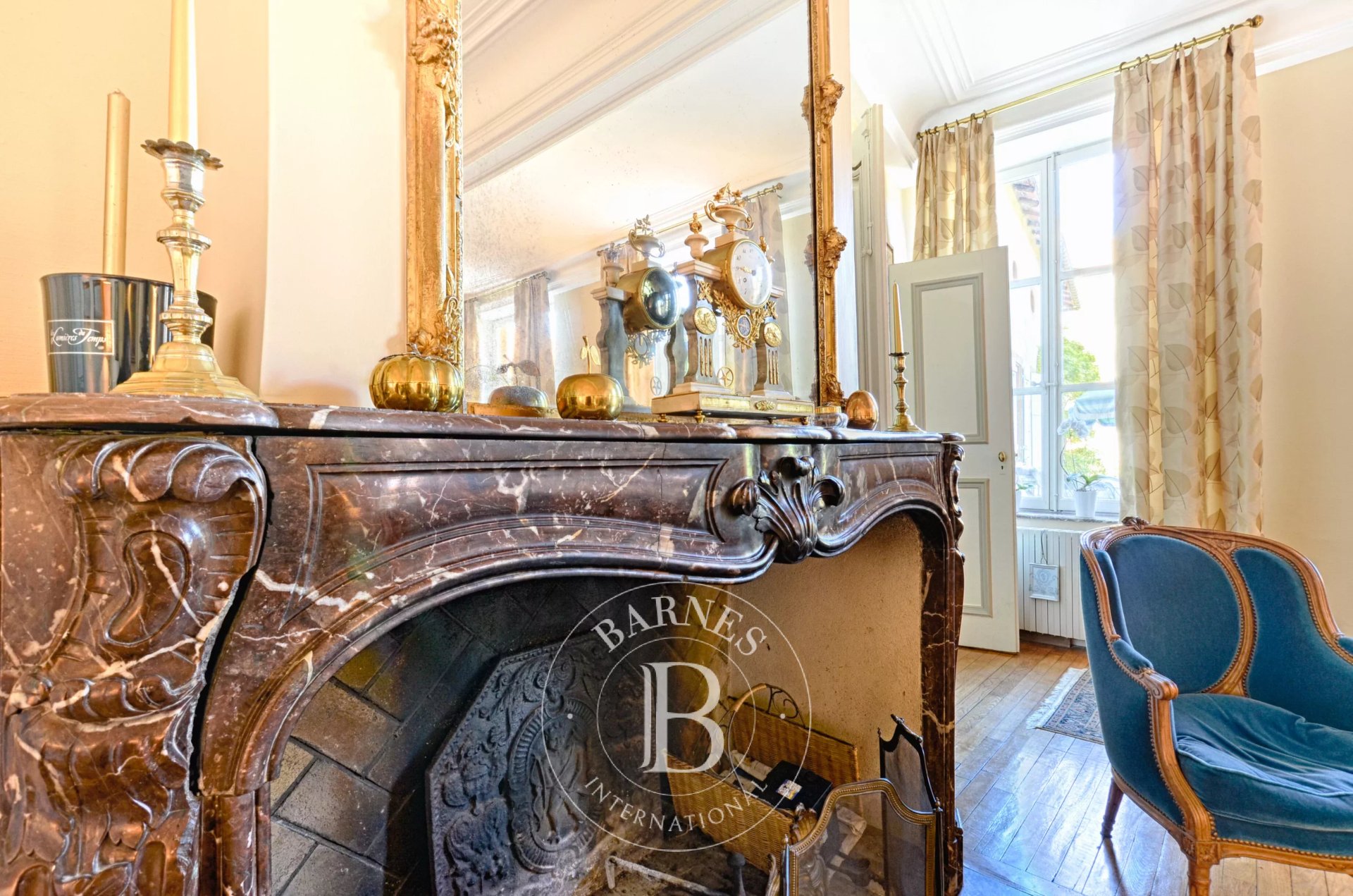 Un majestueux hall d’entrée, un bureau avec cheminée en marbre, une cuisine d’été, un vaste salon, une salle à manger, une cuisine équipée avec sa cheminée d’époque, une buanderie avec pièce de rangement, un cellier ainsi qu’un vestiaire donnant accès à une piscine extérieure chauffée.