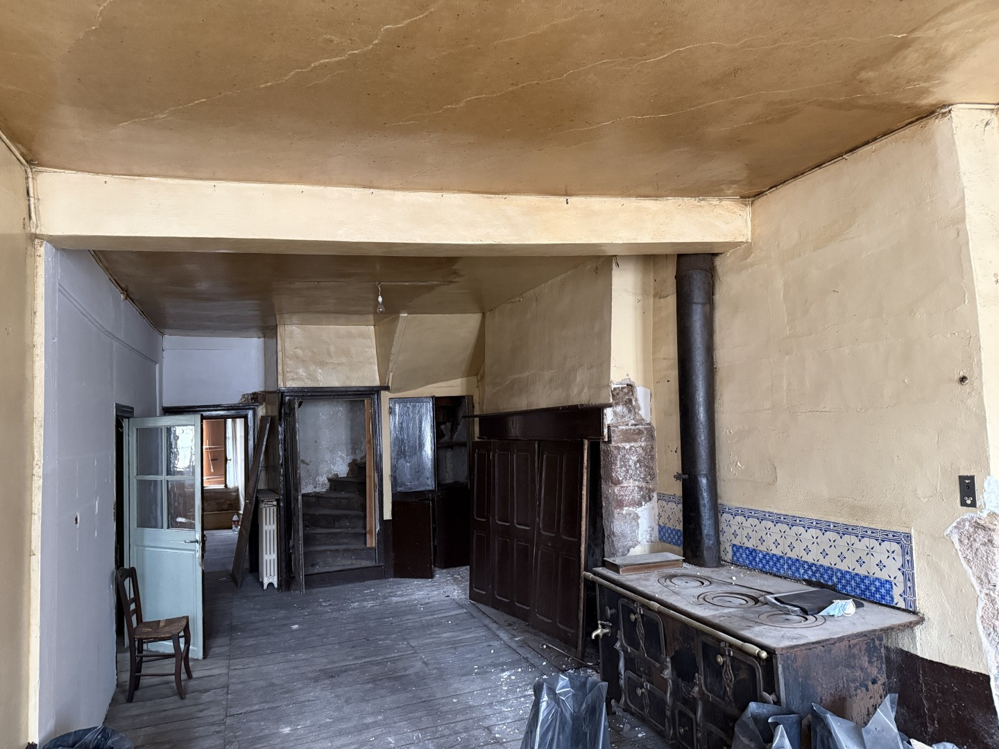 Belle maison de village ancienne de caractère et en pierres à rénover entièrement comprenant au rez-de-chaussée un magasin d'une surface développée de 48 m2 environ, un grand cellier/atelier, un garage et 2 caves; à l'étage un logement à rénover avec cuisine, séjour cheminée, 4 chambres, salle d'eau, wc ; combles aménageables pour 120 m2 environ; à proximité mais non ttenante une parcelle de terrain de 607 m2. Emplacement dans le centre du village.